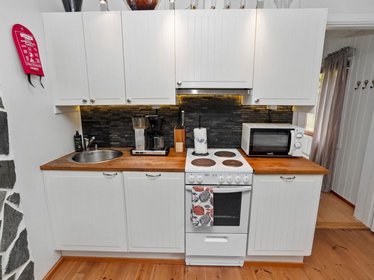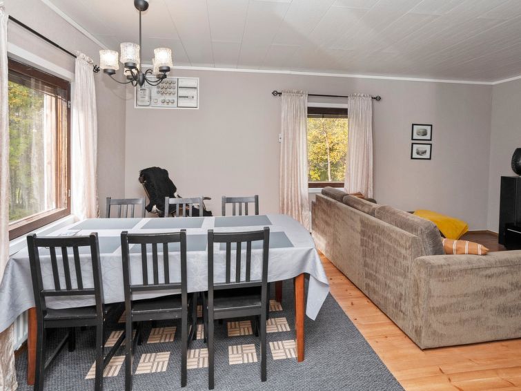 In the yard there is outdoor sauna (in winter time no runnig water in outdoor sauna) and summer kitchen. Quiet place near of lake Pulkkajärvi (distance 300 m). In summer time easy to go fishing on the lake. Use of rowing boat and 3 life jackets is included the price. In the cottage there is a big iron stove what brings comfort for your holiday. Additionally there are karaoke equipment and 3 TVs.