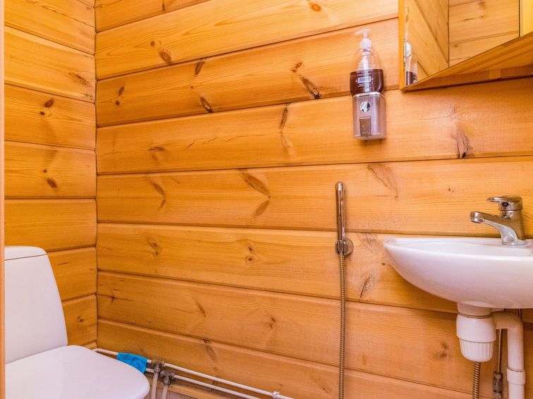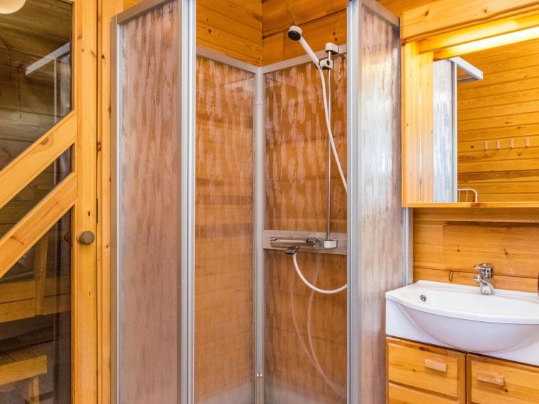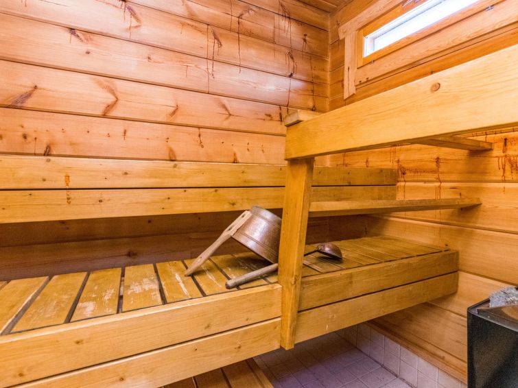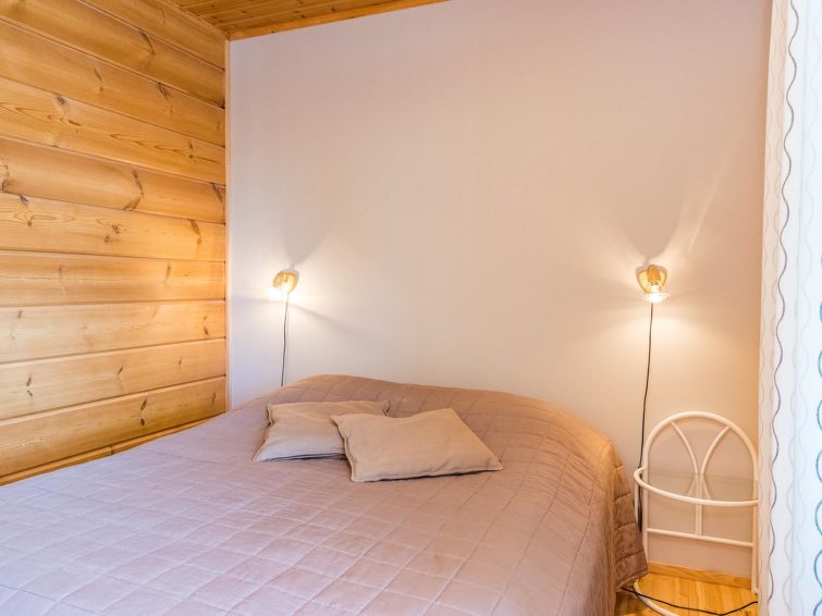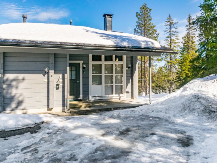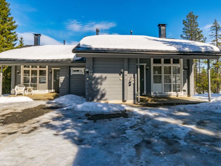 25 km north of Kuusamo, Vuosseli (Eastern Ruka) 1.8 km, Ruka village (Western Ruka) 4 km. Apartment in log-built semi-detached house, built in 2000, bedroom: double bed, living room: convertible sofa, loft: 2 beds. Kitchen, electric sauna. Area 58 m², loft (sloping ceilings) 20 m². Semi-detached house situated on Vuosselinrinne area. Other semi-detached houses and cottages in the area.