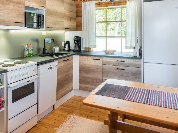 30 km to the north from Kuusamo, Vuosseli (East-Ruka) 3.4 km, Ruka village (West-Ruka, central square) 7.4 km, lake Vuosselijärvi 700 m. Apartment in a kelo log-built semidetached house, built in 1990. Bedroom: double bed, sleeping alcove: bunk bed, loft: mattresses, steep stairs to the loft. Living room, kitchen, electric sauna.