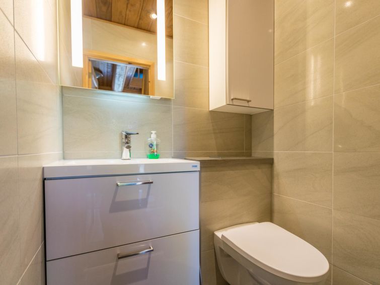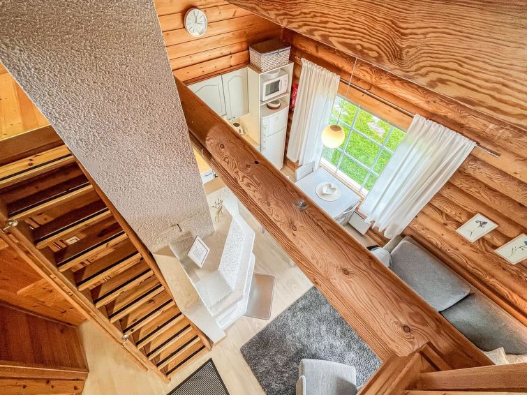 Downstairs bedroom: double bed, loft: 2 beds, combined kitchen/ living room, wash room, electric sauna, toilet, terrace. Downstairs 40 m² + loft 12 m².