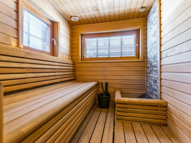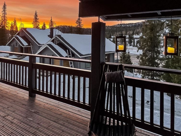 Stylish, terraced house apartment is built in 2008. Great location near slopes and skiing tracks. Bedroom: 2 beds, loft: 2 beds, combined kitchen/living room, wash room, electric sauna, toilet, terrace. Basement floor 68 m², downstairs 68 m² and loft 17 m². There is toilets also next to the bedroom and in the basement floor technical room.