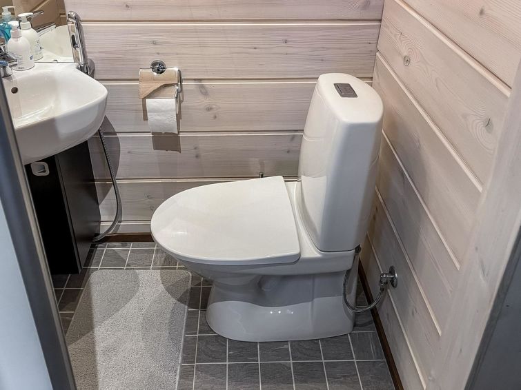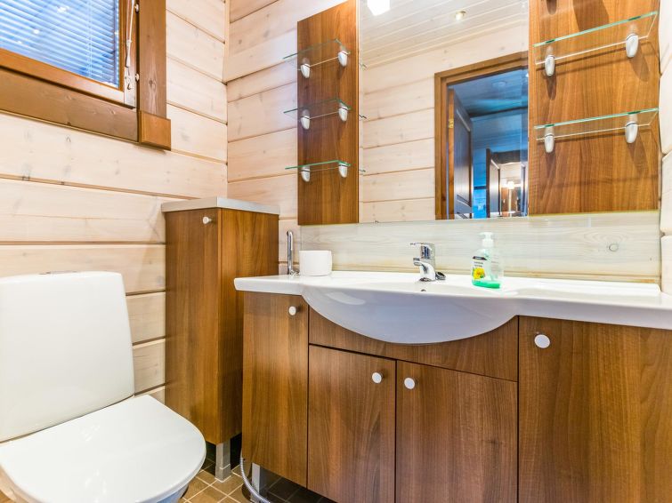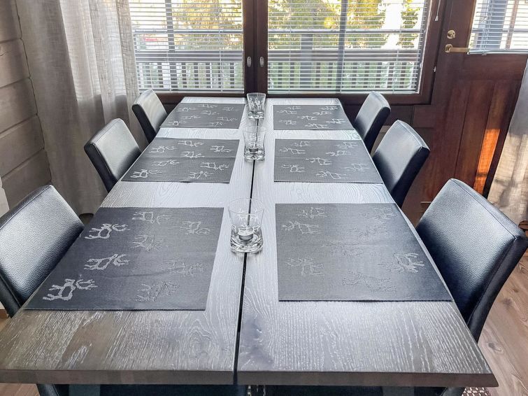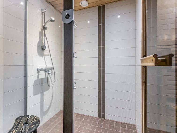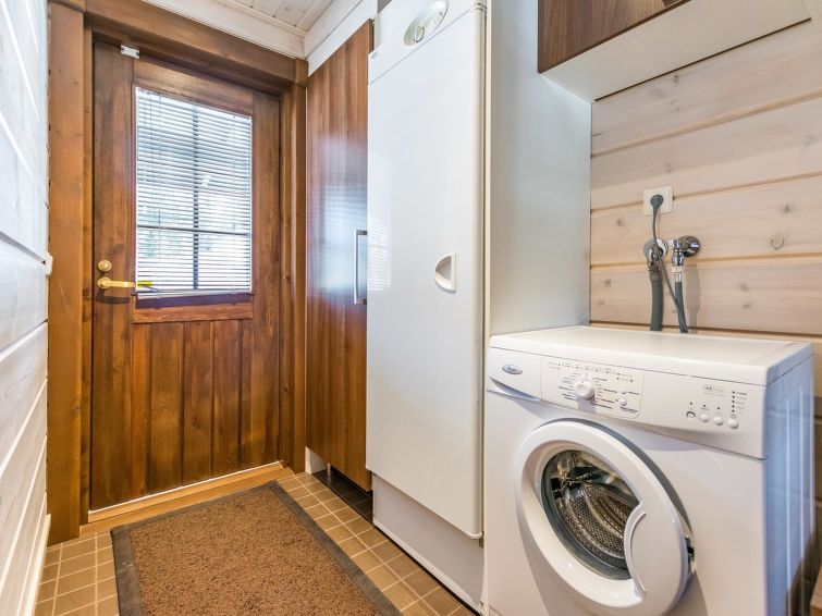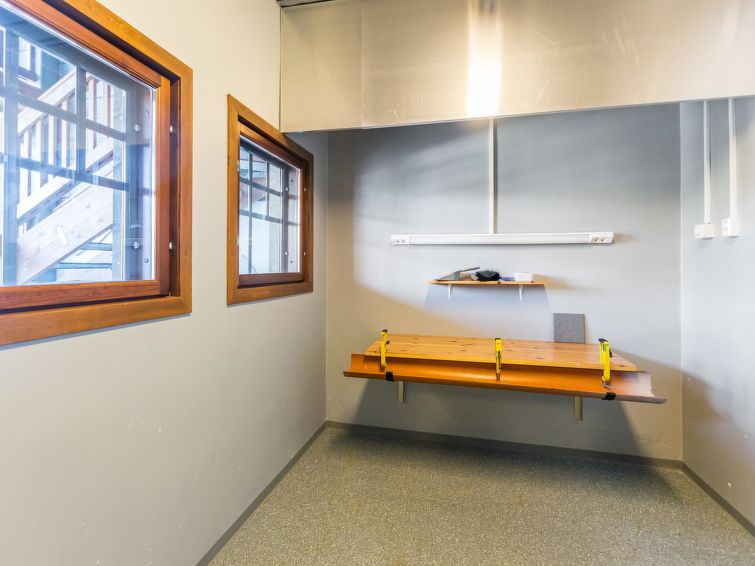 There is closet space for clothes in the hall and bedroom, a clothes rack and open shelves in the loft. Storage and drying of outerwear, shoes and overalls in the maintenance room on the ground floor, where you can also conveniently dry your equipment after skiing and you can service e.g. your skis. The stairs are outside, so it's convenient to take your own slippers with you on vacation.