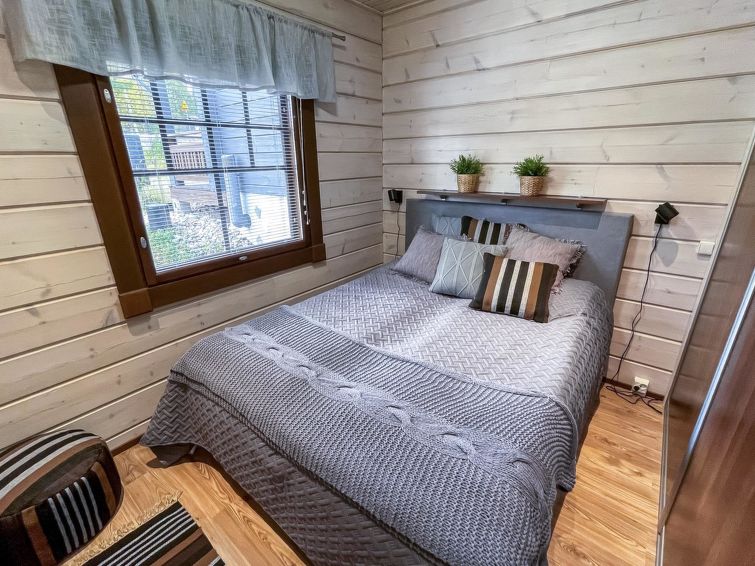 Bedroom: 2 beds, sleeping alcove on the loft: 4 beds (spiral stairs to the loft). Kitchen, utility room, laundry room, electric sauna, separate toilet and a small toilet next to the bedroom, two outdoor terraces.