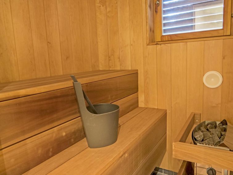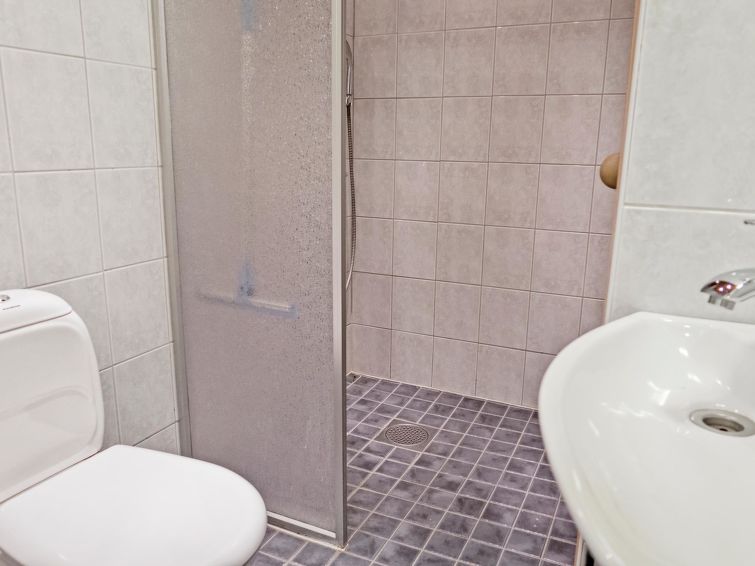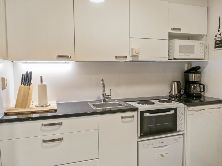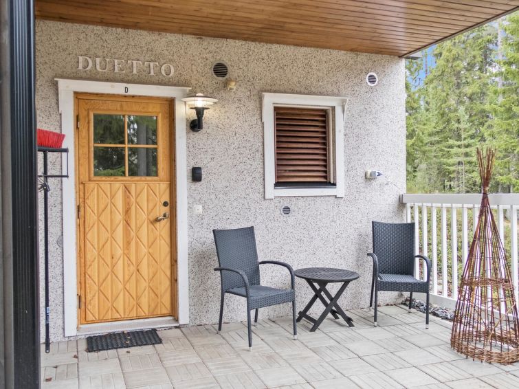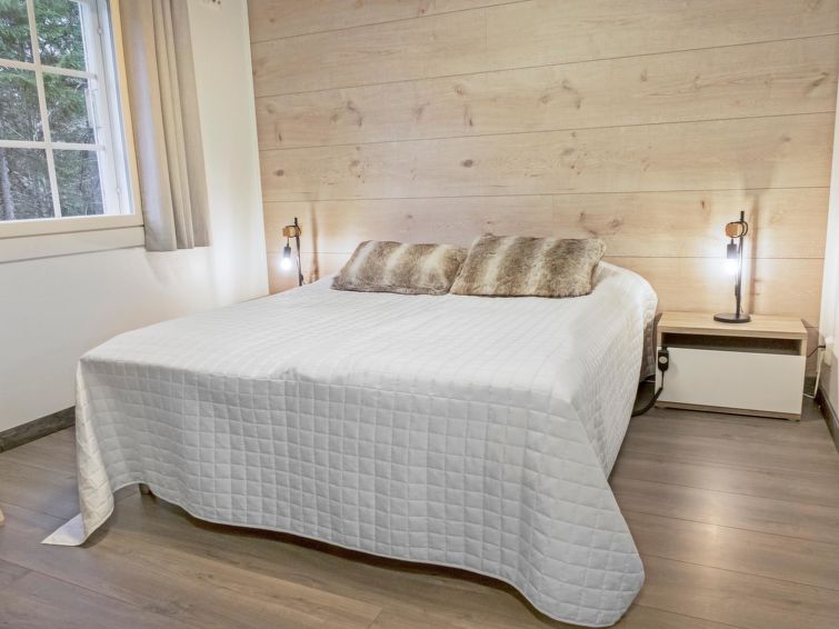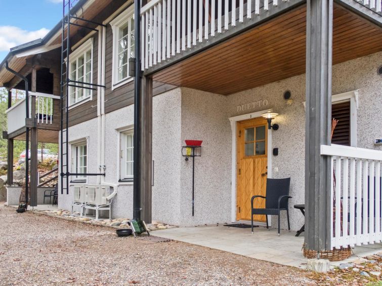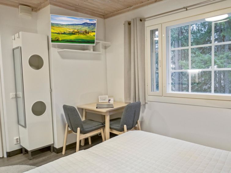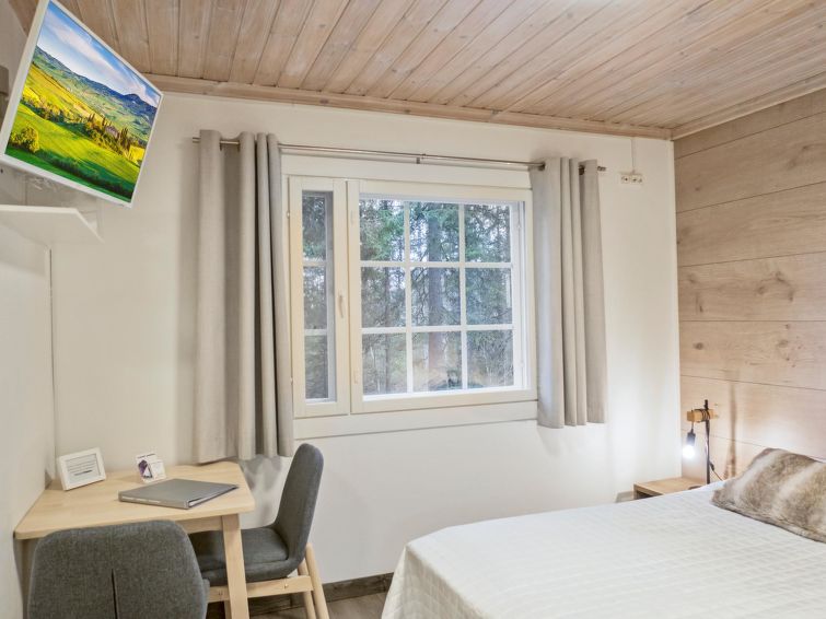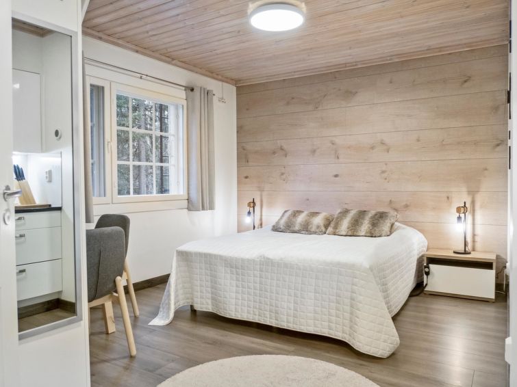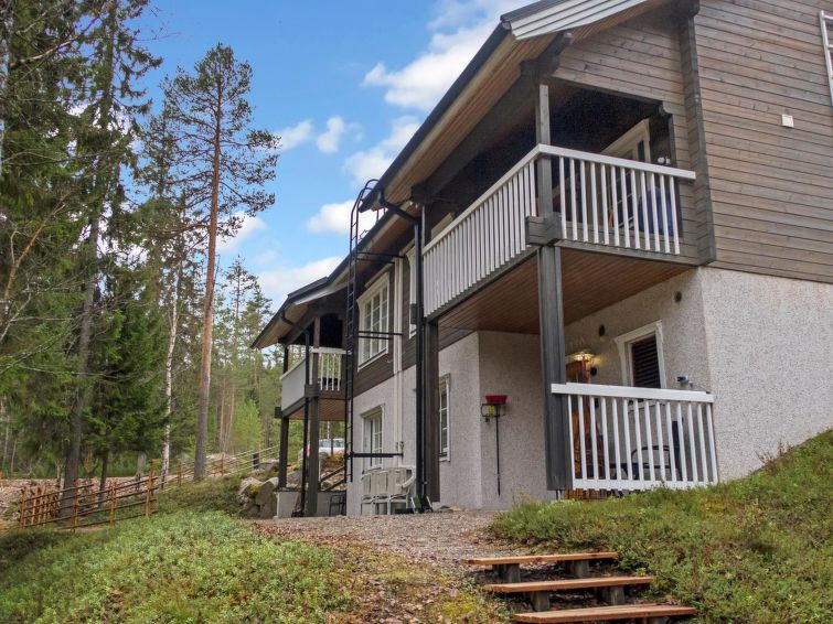 This downstairs suite is in a log house in Vuokatti ski centre was completed in 2003. Floor area 26 m². One room with kitchenette and living room/bedroom with 2 beds, motor beds. Sauna (electric), washroom/toilet. Internet connection (wireless, speed 1MB). Kajaani 33 km, Sotkamo 7 km, Vuokatti ski slope 100 m, cross country track 50 m. Beach 1,5 km. Cleaning not included, cleaning booked in advance 47 €. Linen booked in advance 13 €/person. No pets allowed.