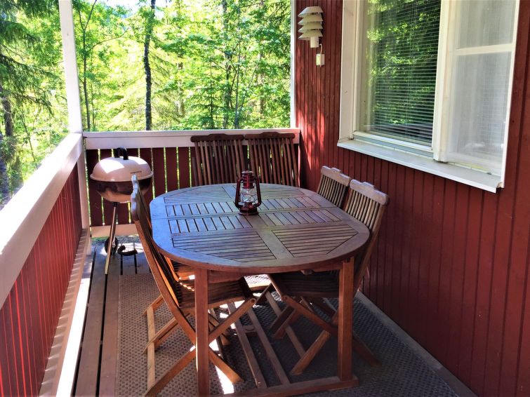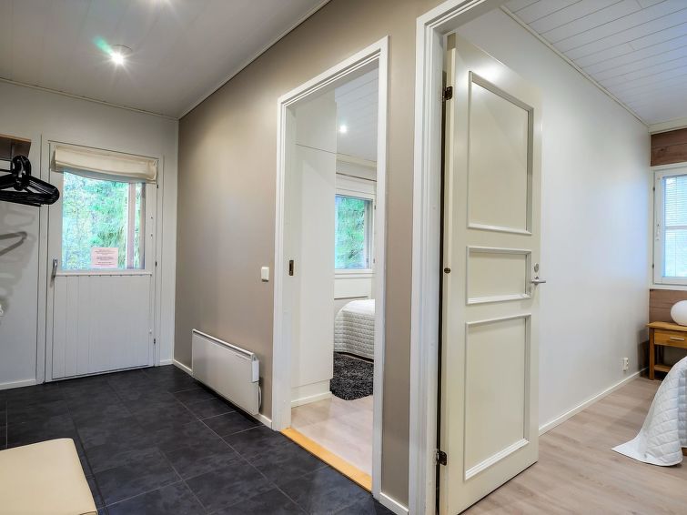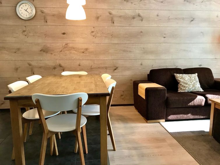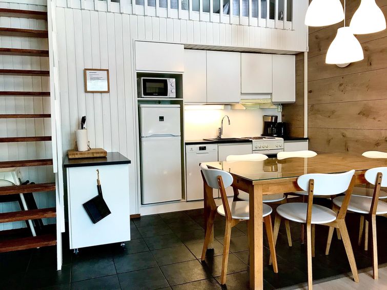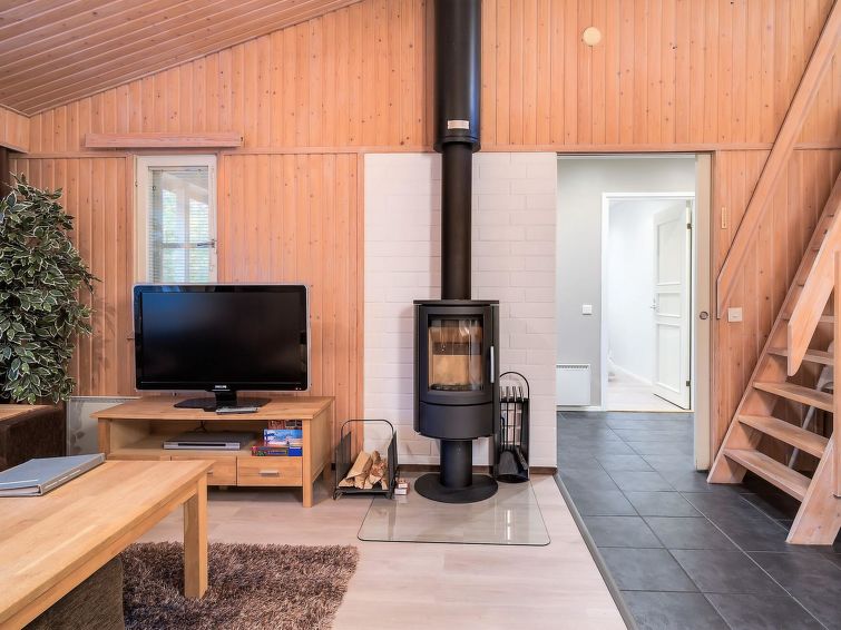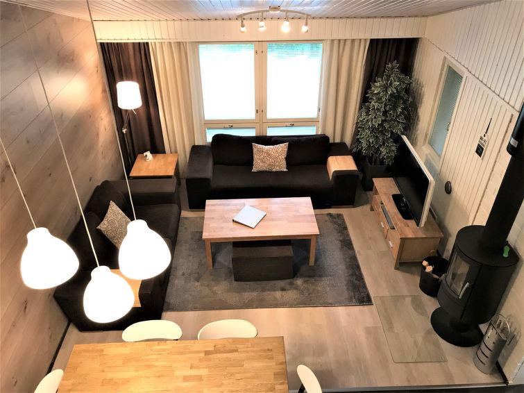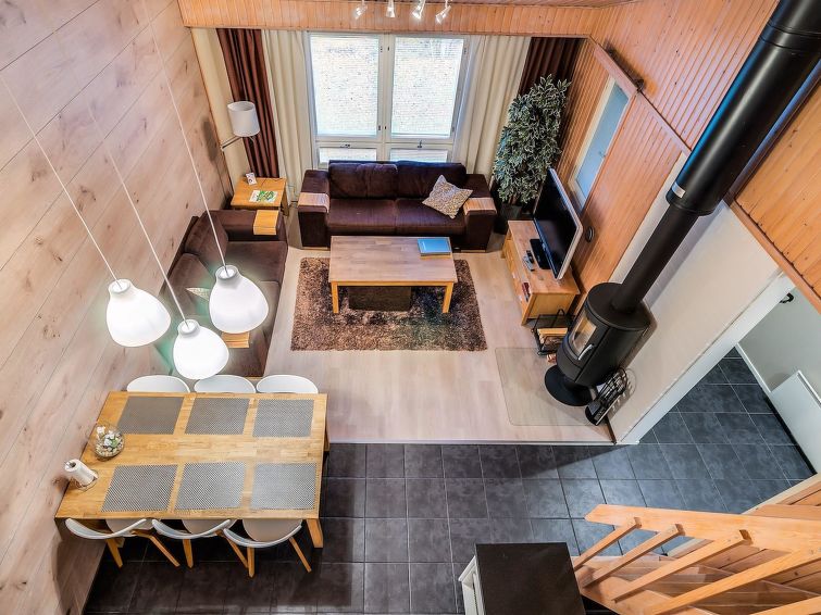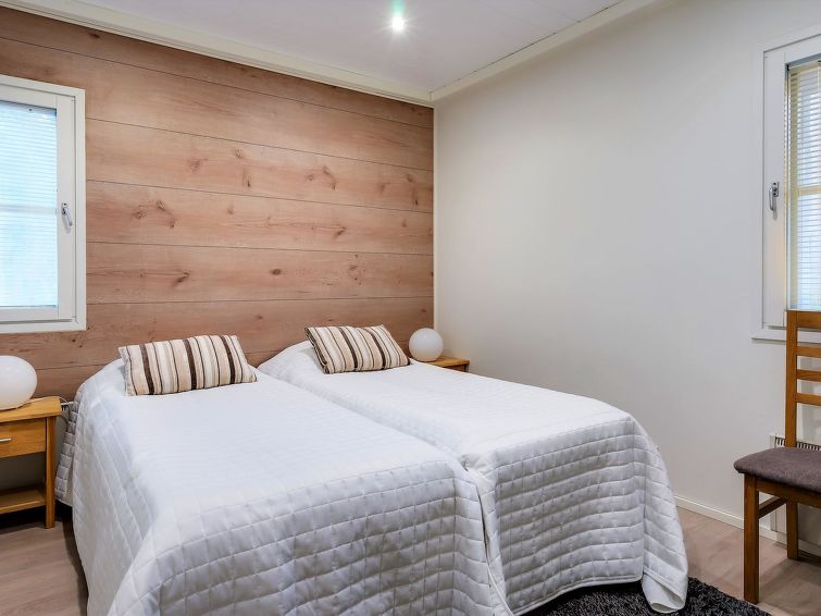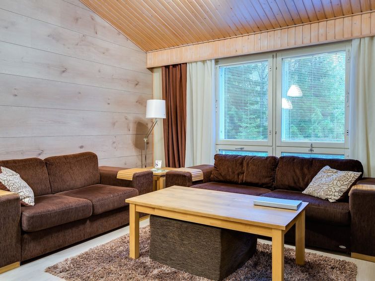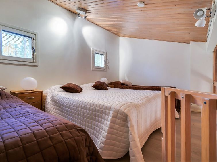 This apartment in semi-detached houselocated in Vuokatti ski centre was completed in 1989. Floor area 80 m², loft 11 m². Combined living room & kitchen, bedroom 1: 2 beds, bedroom 2: 2 beds, sauna (electric heating), washroom/toilet. Loft with 2 beds and a bed (140 cm width, for 1 person). Bed and high chair for a baby. Barbeque use on summer time. Kajaani 33 km, Sotkamo 7 km, Vuokatti ski slope 100 m, cross country track 100 m. Beach 1,5 km. Pets are not allowed. Internet connection (wireless, speed 5 MB).