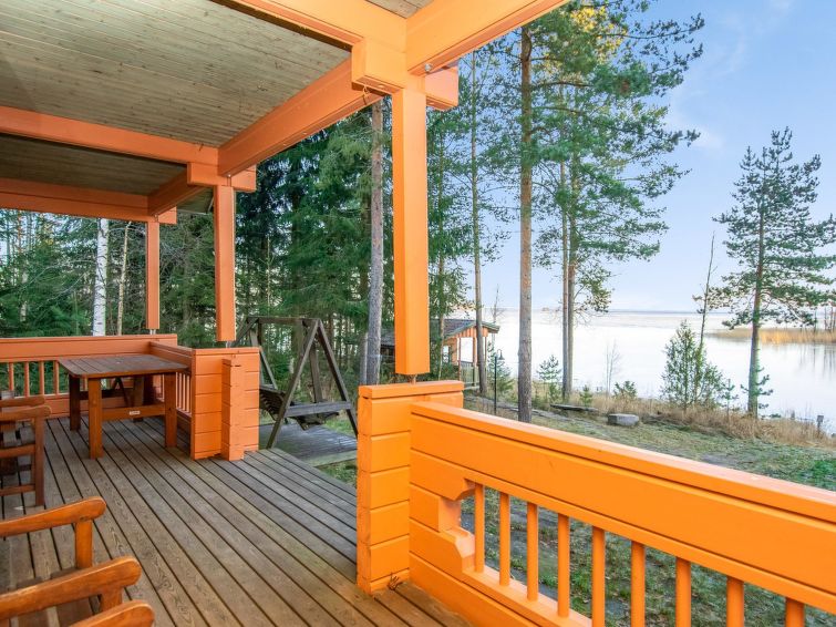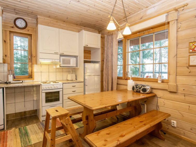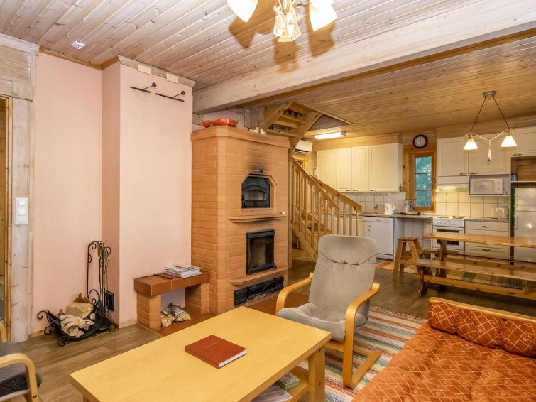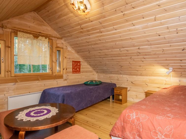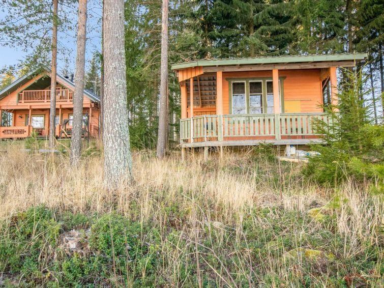 Log cottage 2006, living room/ kitchen, bedroom double bed, upstairs bedroom 3 beds and sofa bed in the lobby, utilities room/ dressing room, washroom, sauna, open porch. Barbecue shelter with gas grill (wood fired grill not in use).