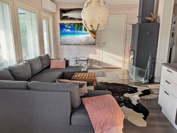 Wood-built villa, built in 2022. Living room/kitchen, 2 bedrooms, both with 2 beds, in the another bedroom also single mattress pad available. Sauna, washroom, utility room, separate WC and covered terrace. The living room couch and air mattress (width 120 cm) are extra beds.