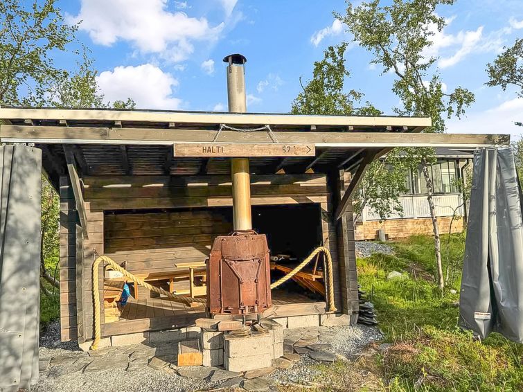 430 km to the northwest from Rovaniemi, located by lake Ala-Kilpisjärvi, 65 m distance to the shore, natural beach and very fresh water.