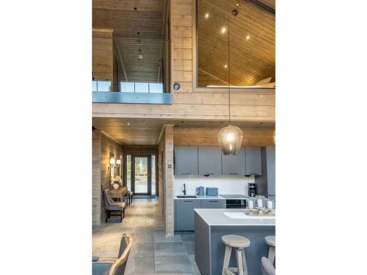 Facilities on two floors. On the first floor, spacious hall with plenty of space for cross-country skiing and downhill skiing equipment. Living room, dining room and kitchen are the heart of this villa. The kitchen is very well equipped, so you can cook and even bake for a larger group.