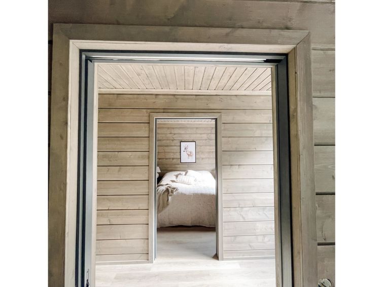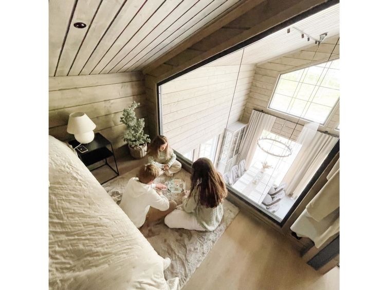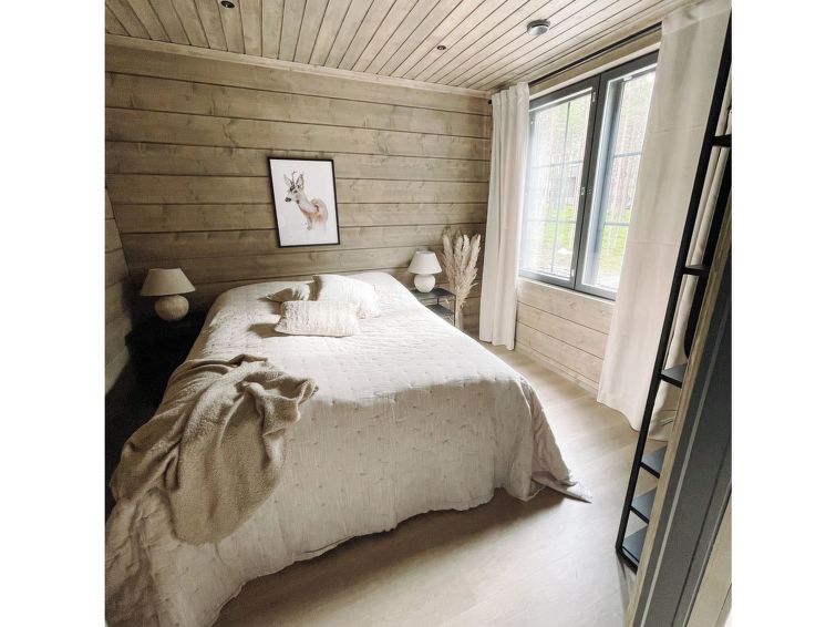 For sleeping, the cabin has a travel bed + pillow and blanket. On the upper floor, there is a door between the two bedrooms, so the bedrooms can be used as a family room if needed. In addition, the kitchen showcase has some board games for the little ones as well as for family moments together. There are also some Lapland-related children's books in the cupboard!