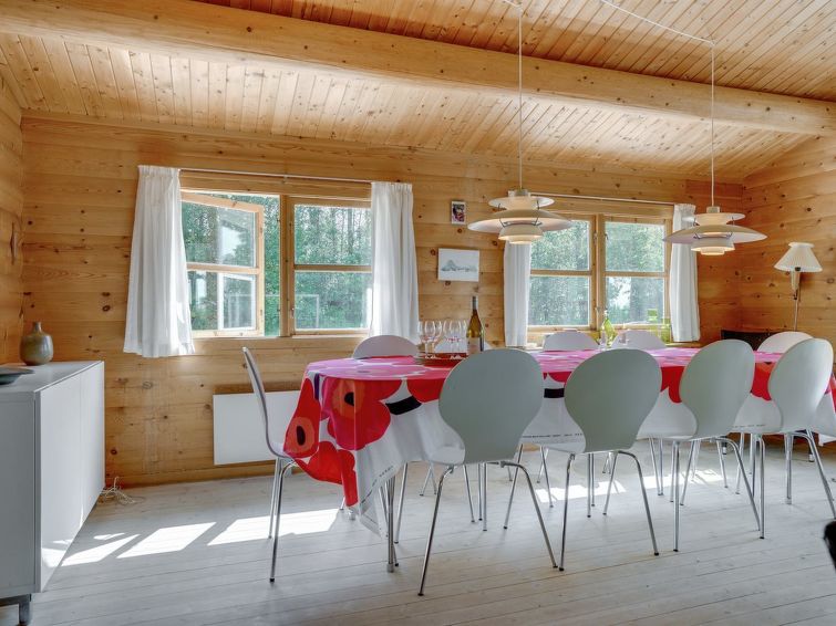 Enmannsbolig, bygget i 1983. 200 m fra sjøen. Privat: uberørt tomt 3'600 m2. Utendørs dusj, terrasse (50 m2). I huset: vaskemaskin, tørketrommel. Parkering ved hbrukt. Daglivarehandel 900 m. Eieren godtar ikke noen ungdomsgrupper.