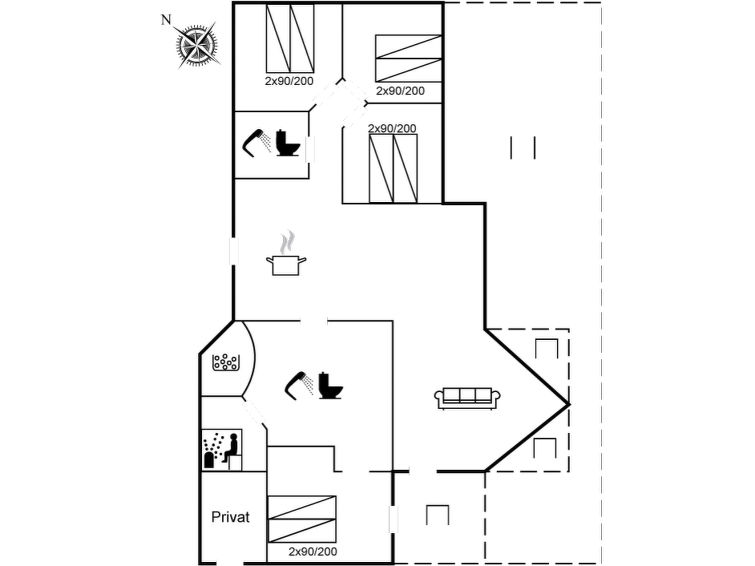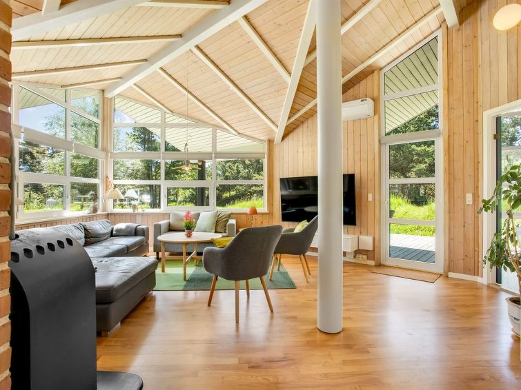 "Winder" - 800m from the sea in NW Jutland", 4 rom hus 119 m2. Passer for 8 voksne + 1 barn. Stue med, TV og radio. 1 rom med 2 senger. 1 rom med 2 senger. 1 rom med 2 senger. Åpen galleri, 1 rom med 2 senger og 2 sovemuligheter. Kjøkken (stekeovn, oppvaskmaskin, 4 keramiske kokeplater, mikrobølgeovn, frys). 2 dusjer/WC, boblebad. Terrasse 20 m2, dekt. Fasiliteter: høy barnestol barneseng (ekstra). Internett (trådløs LAN [WLAN]). Vennligst merk: røykfri bolig. Max kjæledyr / hund tillatt 1 kjæledyr / hund tillatt.