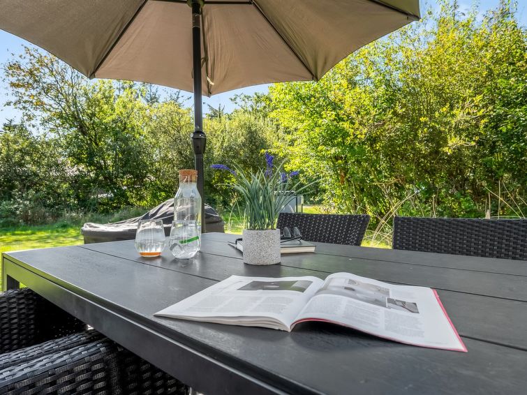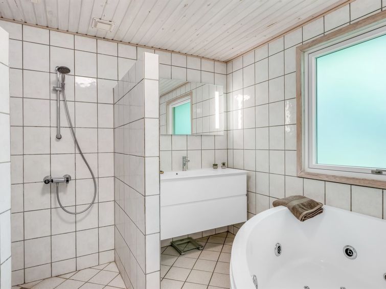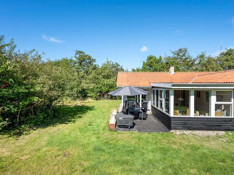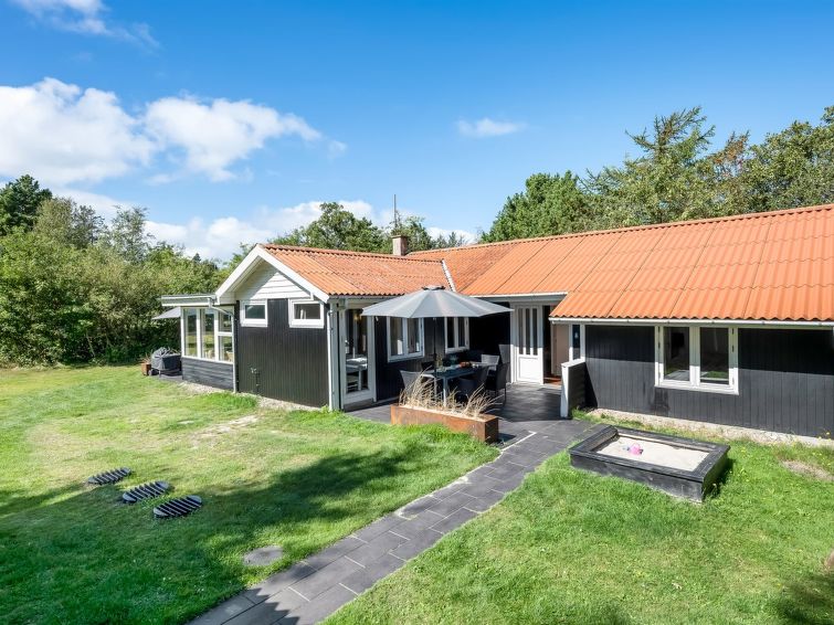 "Yall" - 1km from the sea in Western Jutland", 4 rom hus 138 m2. Passer for 8 voksne. Stue med, TV, radio, CD-spiller og DVD. 1 rom med, 1 dobbeltseng. 1 rom med, 1 dobbeltseng. 1 rom med, 1 dobbeltseng. 1 rom med, 1 x 2 køysenger. Kjøkken (stekeovn, oppvaskmaskin, 4 keramiske kokeplater, mikrobølgeovn, frys). 2 dusjer/WC, boblebad. Terrasse 10 m2, dekt. Fasiliteter: Internett (trådløs LAN [WLAN]). Vennligst merk: røykfri bolig. Max kjæledyr / hund tillatt 1 kjæledyr / hund tillatt.