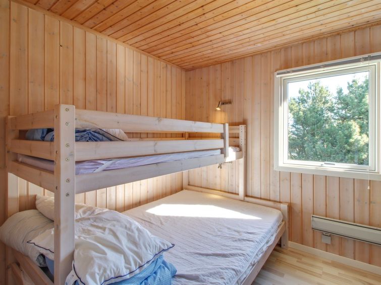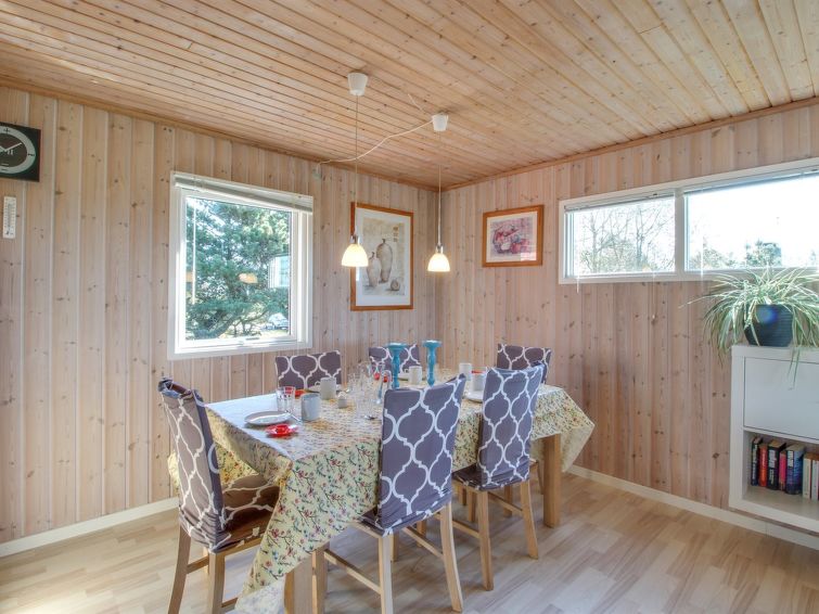 "Yanne" - 400m from the sea in NE Jutland", 3 rom hus 68 m2. Passer for 6 voksne + 1 barn. Stue med, TV, CD-spiller, stereoanlegg og DVD. 1 rom med, 1 dobbeltseng. 1 rom med 2 senger. 1 rom med, 1 dobbeltseng. Kjøkken (stekeovn, oppvaskmaskin, 4 keramiske kokeplater, mikrobølgeovn, frys). Dusj/WC. Terrasse 14 m2, dekt. Fasiliteter: høy barnestol barneseng (ekstra). Internett (trådløs LAN [WLAN]). Vennligst merk: røykfri bolig. Max kjæledyr/små hunder tillatt 2 kjæledyr/små hunder tillatt.