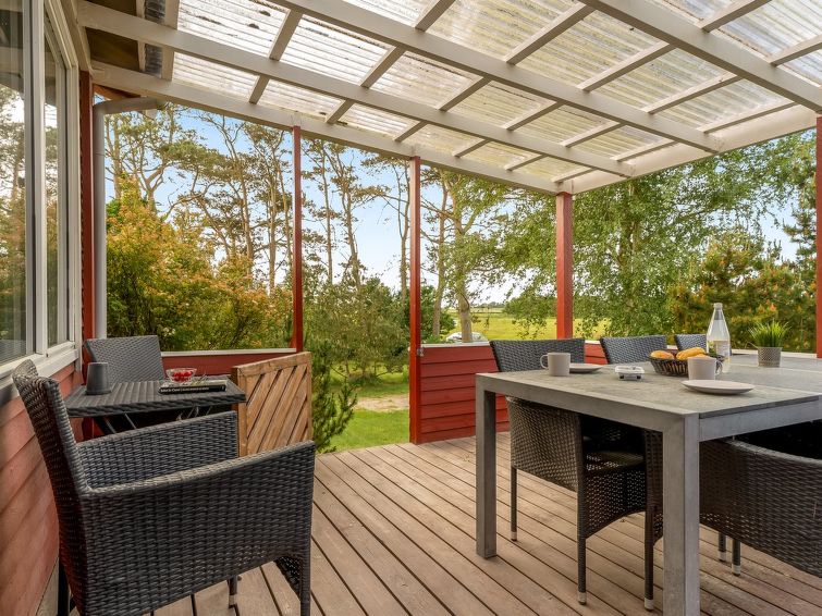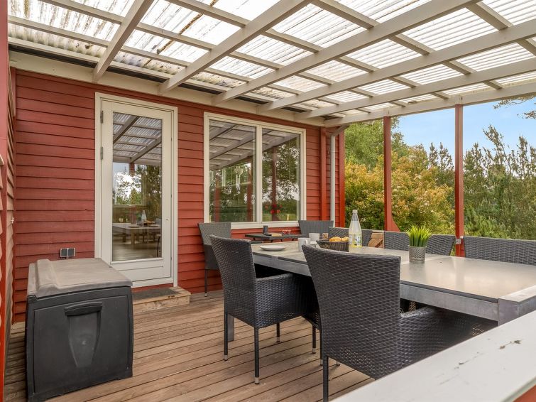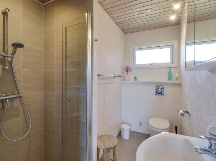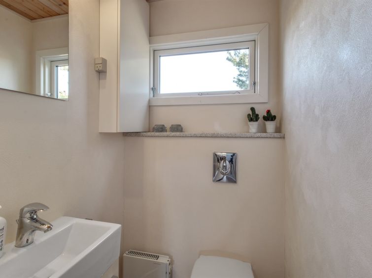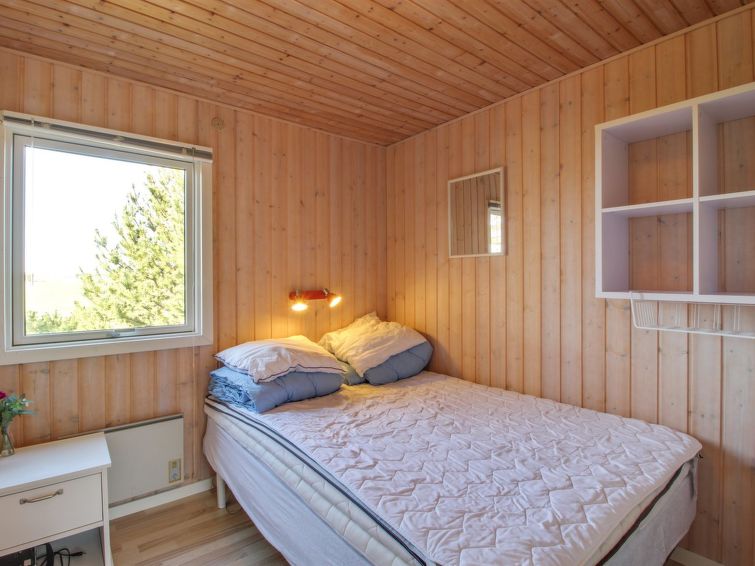 Enmannsbolig, bygget i 1973. 400 m fra sjøen. Privat: uberørt tomt 1'114 m2. Terrasse (14 m2), lekeplass (huske). I huset: vaskemaskin, tørketrommel. Parkering ved hbrukt. Daglivarehandel 2 km. Golfbane 20 km. Eieren godtar ikke noen ungdomsgrupper.