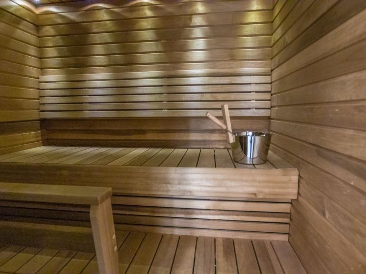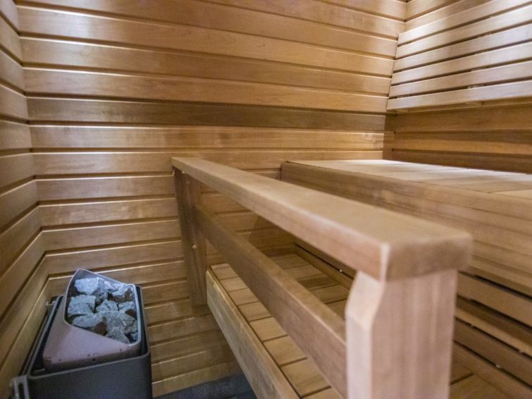 (140 cm wide), sleeping alcove (2 separate beds), washroom/WC, sauna (electric sauna stove) in the apartment. The housing company has a shared storage space, including laundry room (washing machine and two drying cabinets) and a ski waxing table. These facilities can be used freely. In addition, there is a storage cage for each apartment. The cage can be used, for example, for storing fuel wood and skis.