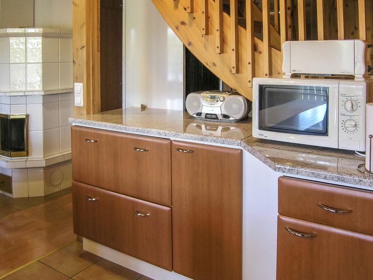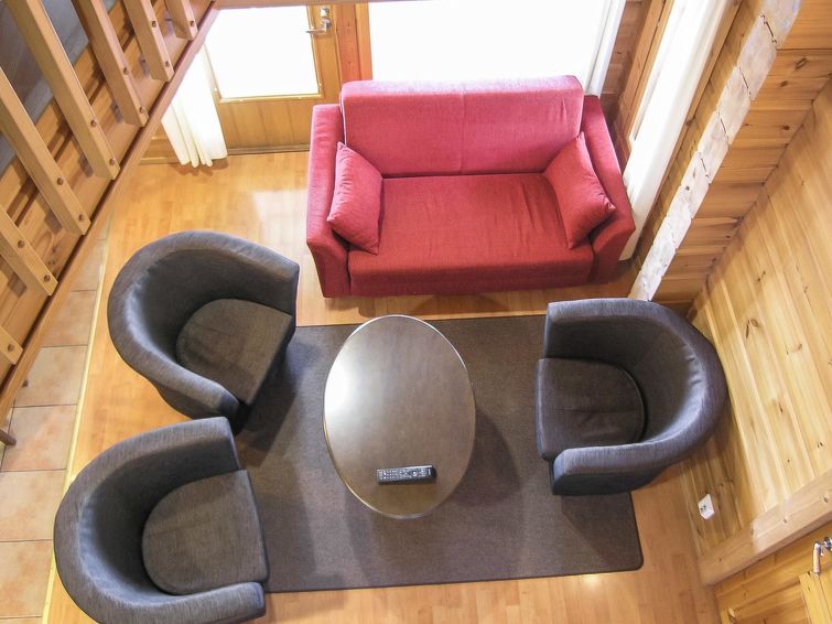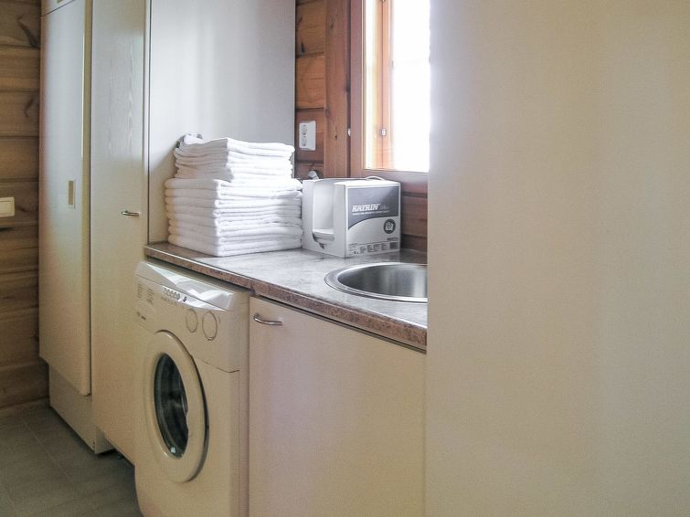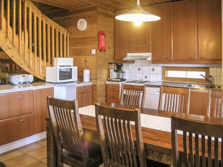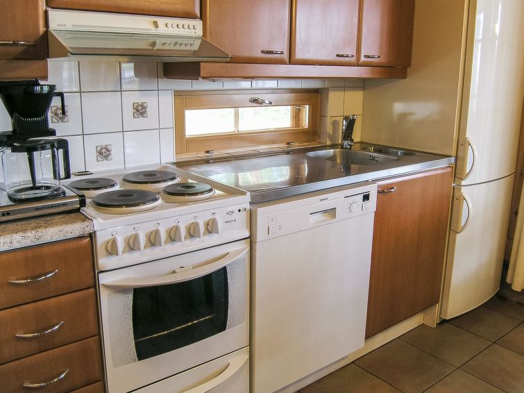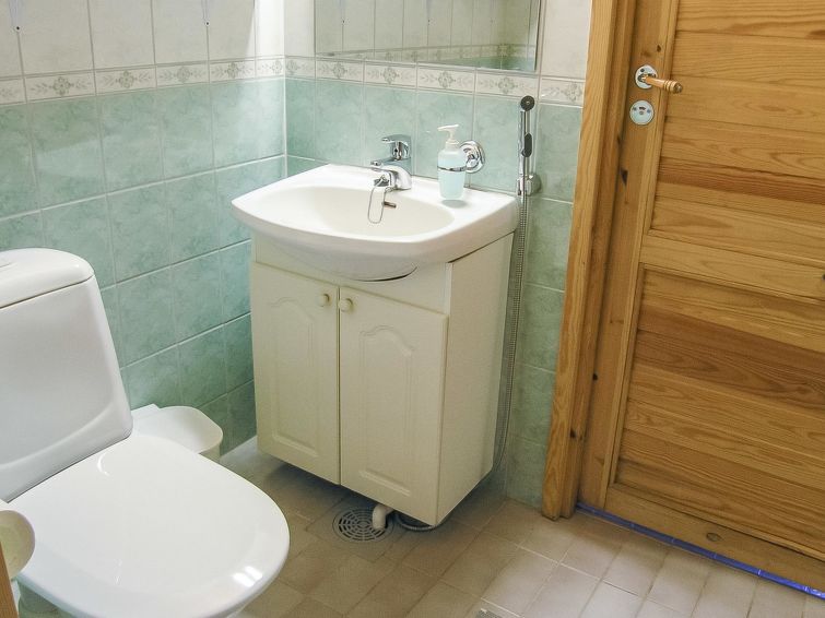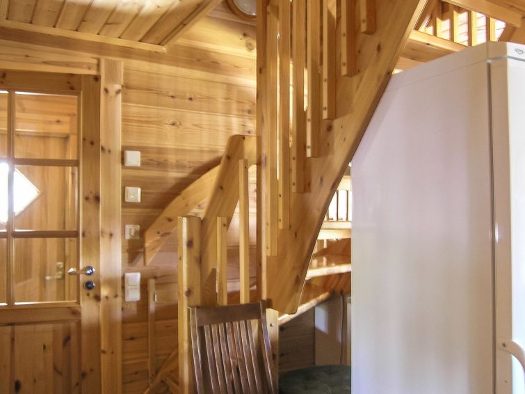 Well equipped kitchen, livingroom with fireplace. Two bedroon in downstaris, one with twinbed and one with separate beds for two. Upstairs there is a bedroom for 4 persons (twin bed and separate beds for 2). Open balcony with sofa bed for 1-2 persons. 2 x wc, 2 x shower, sauna (electry heated). Terrace, gas barbeque use on summertime. There is a barbeque place on the beach.