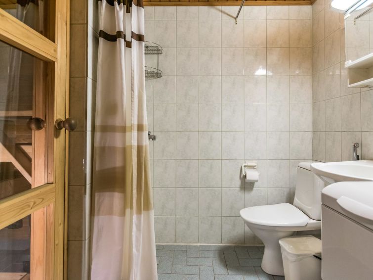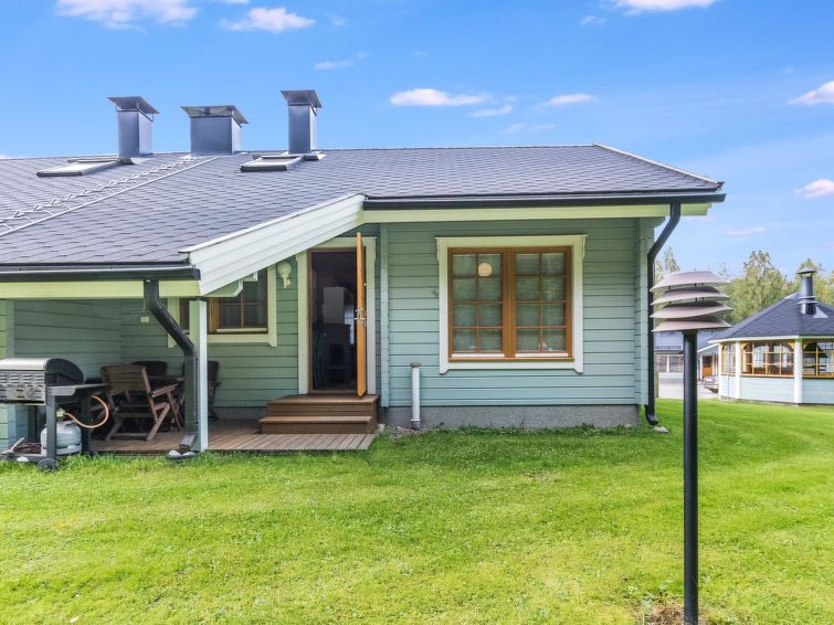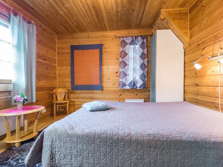 This apartment in semi-detached log house located in Vuokatti was completed in 1999. Floor area 50 m², loft 25 m². Combined living room & kitchen with sofa bed for 1-2 persons, bedroom with twin bed. Loft with separate beds for four persons. Sauna (electric heating), washroom and toilet. Shared beach, boat and dock. Barbecue hut in shared use.