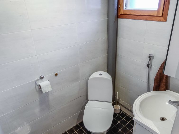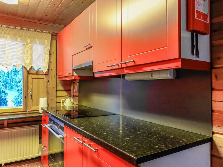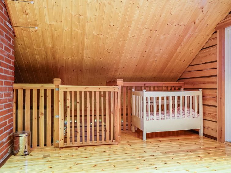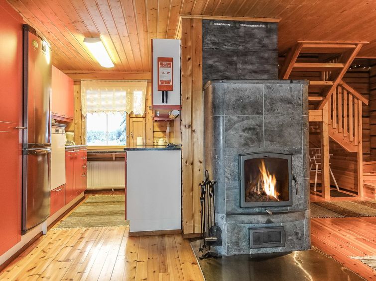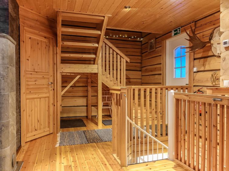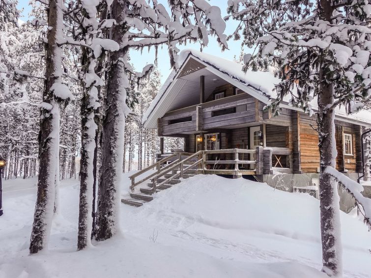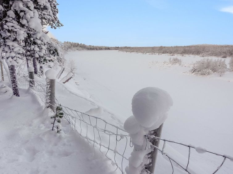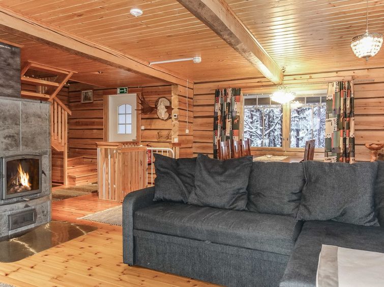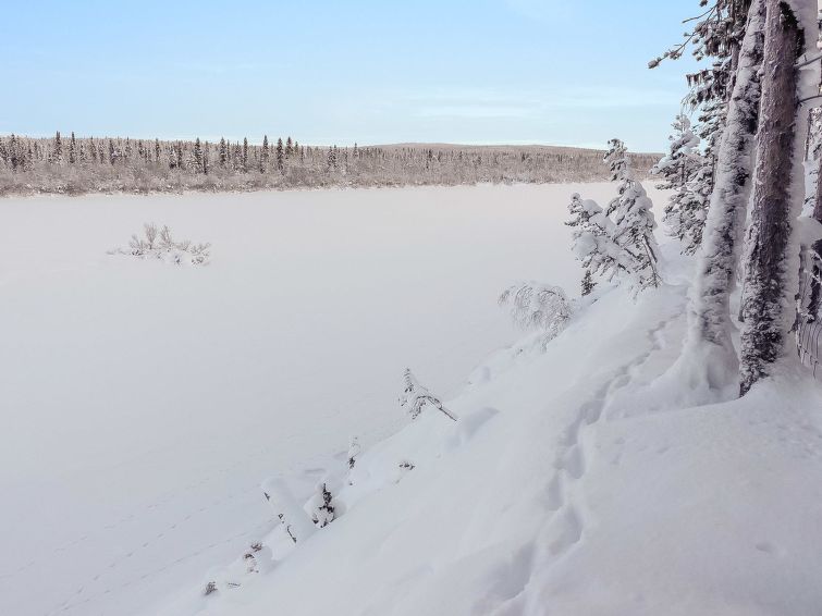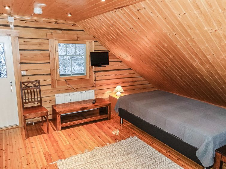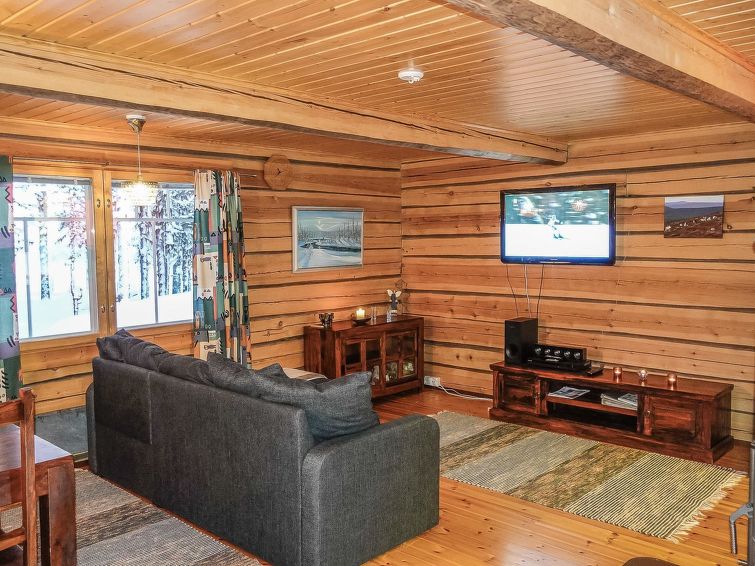 Home theatre equipment. Child’s cot and baby feeding chair available, if required. Log cottage on river bank in typical Pallas-Yllästunturi National Park scenery (to border approx. 4 km). A steep slope from cottage to river beach.