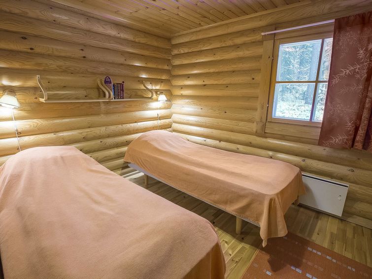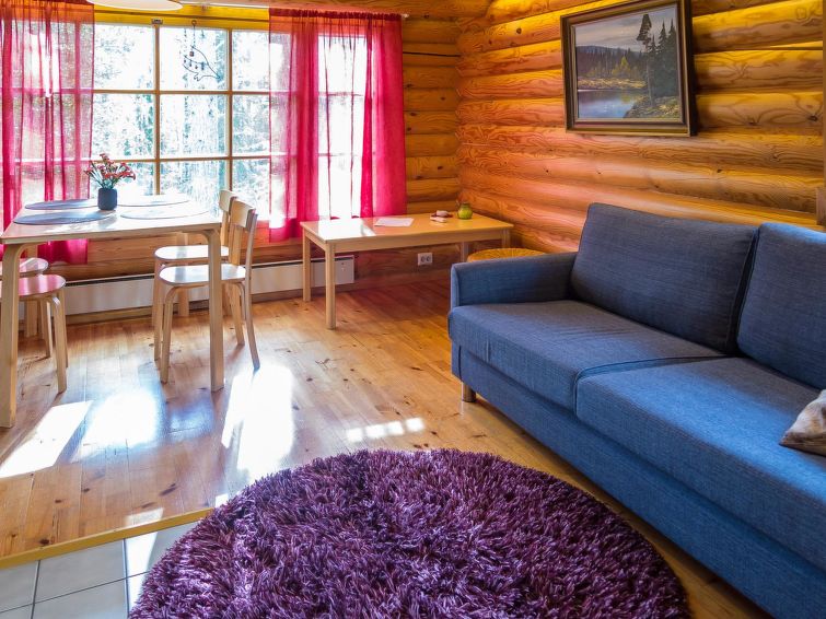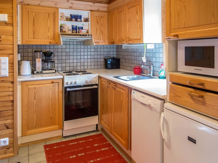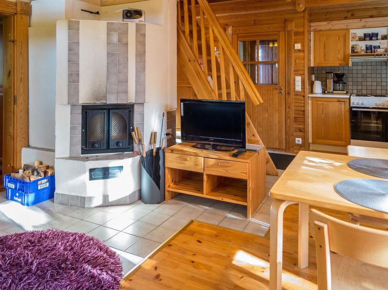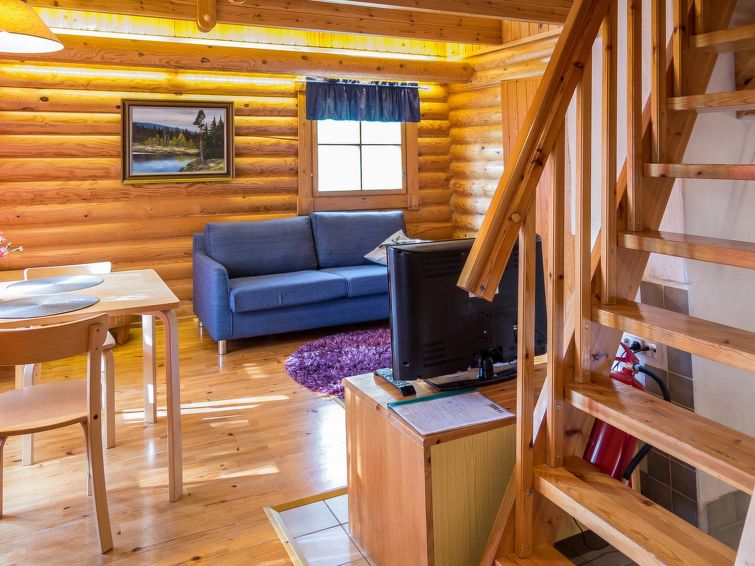 An apartment for 2+2 persons located 40 km north of Kolari in the Äkäslompolo village central area, by Kartanontie road. 45 m² + loft 6 m². One separate bedroom with two beds (80 x 200 cm). Loft with 3 mattresses. Livingroom/kitchen with equipment (eg. oven, microwave oven, dishwasher). Electric sauna, washing room/toilet. No washing machine. Fireplace. Basic semi-detached house apartmen located in Äkäslompolo village, on the side of Kuertunturi fell. No pets allowed. Prices include final cleaning, bed linen available for rent.