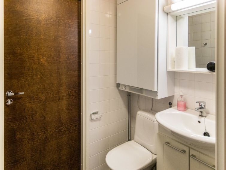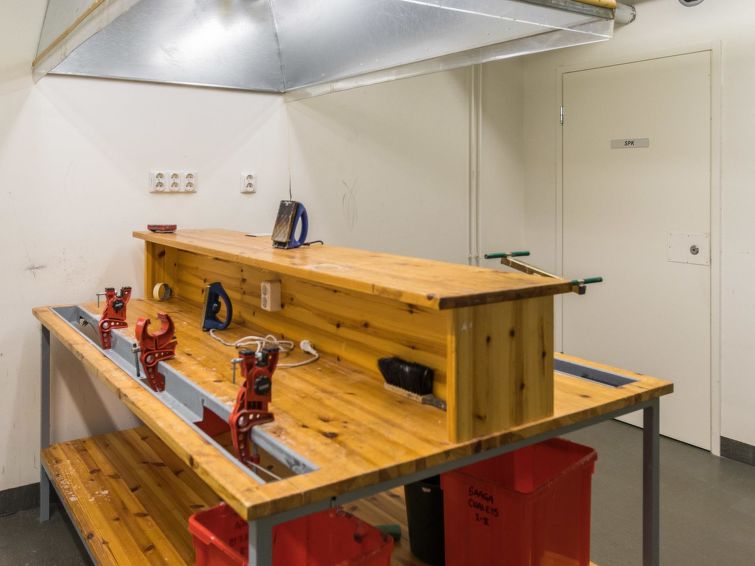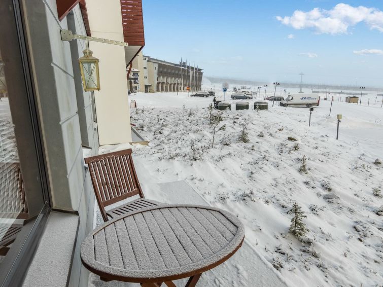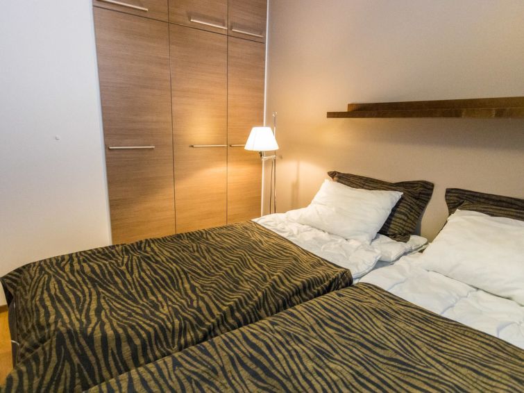 165 km to the north from Rovaniemi, in Ylläsjärvi tourist village, apartment hotel nearby Sport Resort Ylläs, built in 2006. Apartment on the ground floor facing to the Ylläsjärvi village: living room/kitchen (spreadable sofa bed, width 120cm), bedroom (two beds), washroom/WC and sauna. Note! The kitchen is quite small (kitchenette), no baking oven. Drying cabinet is located on the washroom’s wall and it is smaller than usual. There is a shared ski maintenance room located on the ground floor of the house. Notice! It is not allowed to charge an electric car at a power point for a car in the yard. The apartment is located right next to the Lapland Hotel Saga. The apartment offers easy access to the ski slopes, ski trails and hiking/biking trails. Pets are not allowed in the apartment. Final cleaning is included in the price, bed linen can be rented. The prices do not include the services of Lapland Hotel Saaga, which must be reserved separately.