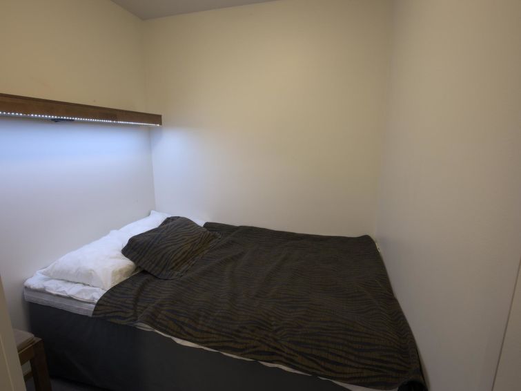 Apartment hotel located 165 km north of Rovaniemi in the Ylläsjärvi village Iso-Ylläs area, near the ski center. Built 2006. Bottom floor has a grocery store and storage space with ski maintenance room for the customers' use. A connecting tunnel gives access to the swimming pools and spa and restaurant services of Lapland Hotel Saaga. This second floor apartment has livingroom/kithcen with bed sofa( wide 120 cm) , bedroom with two beds, sleeping alcove with one bed (bed 120 cm wide, ATTN. only 190 cm long), washing room/toilet, sauna, ski-waxing room, porch, storage space. No oven in kitchen. The apartment's windows and terrace offer views of the fell side, the slopes of Ylläs and the summit. From the terrace you can go directly to the slopes for skiing or mountain biking. Final cleaning is included in prices. Bed linen available for rent.