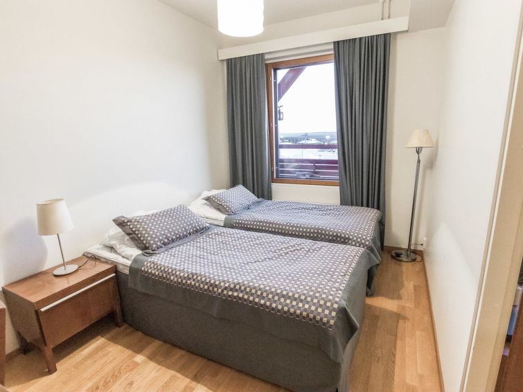 40 km north-east of Kolari, lake Ylläsjärvi 4 km, swimming beach 5,5 km. Livingroom/kitchen with a bed sofa, bed room with two separate beds, electric sauna, shower/toilet. Balcony towards Ylläsjärvi village. Notice! It is not allowed to charge an electric car at a power point for a car in the yard. Good quality apartment in an apartment hotel located in the Ylläsjärvi village Iso-Ylläs area. The apartment hotel is right next to Lapland Hotel Saaga with easy access to the slopes, skiing tracks and hiking routes. No pets allowed. Prices include final cleaning, bed linen available for rent. Prices do not include the services of Lapland Hotel Saaga, they must be reserved separately from the hotel.