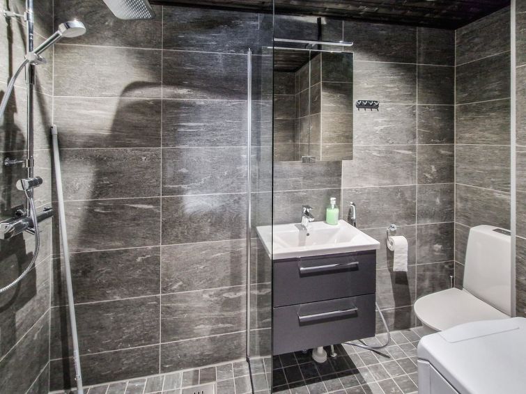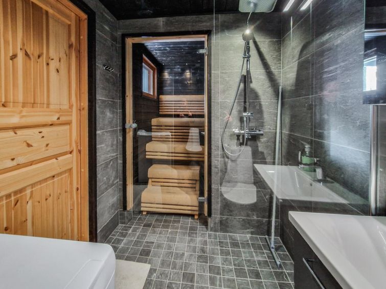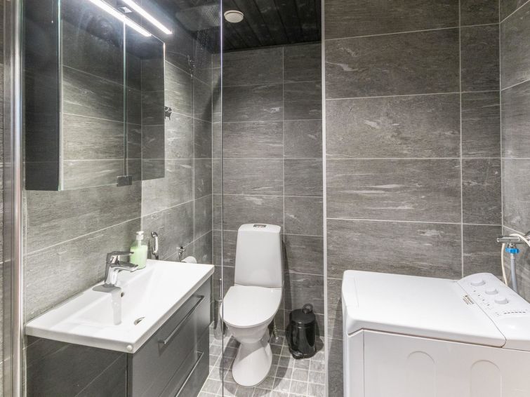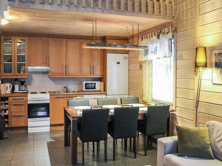 In addition: dishwasher, water boiler and toaster, 2 x tv. Maintenance area for the skis, waxing and grinding. Area 65 m² of which 13 m² on the loft. Good quality duplex apartment located in the Ylläsjärvi village new cottage area near the Maisematie scenic road. Location ideal for wintersports. Pets are allowed for extra price. Prices include final cleaning, bed linen are available for rent.