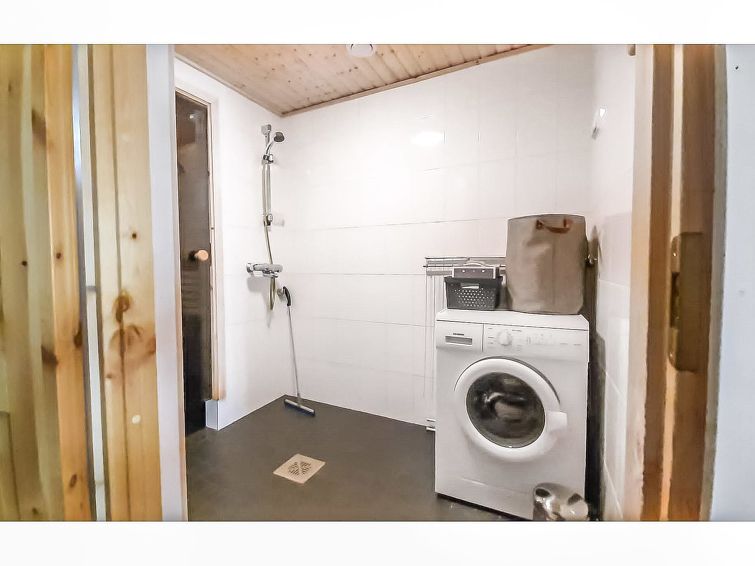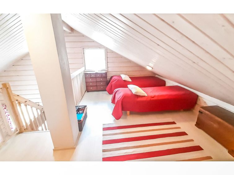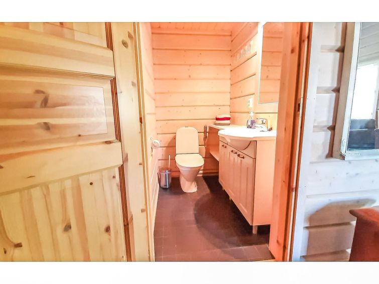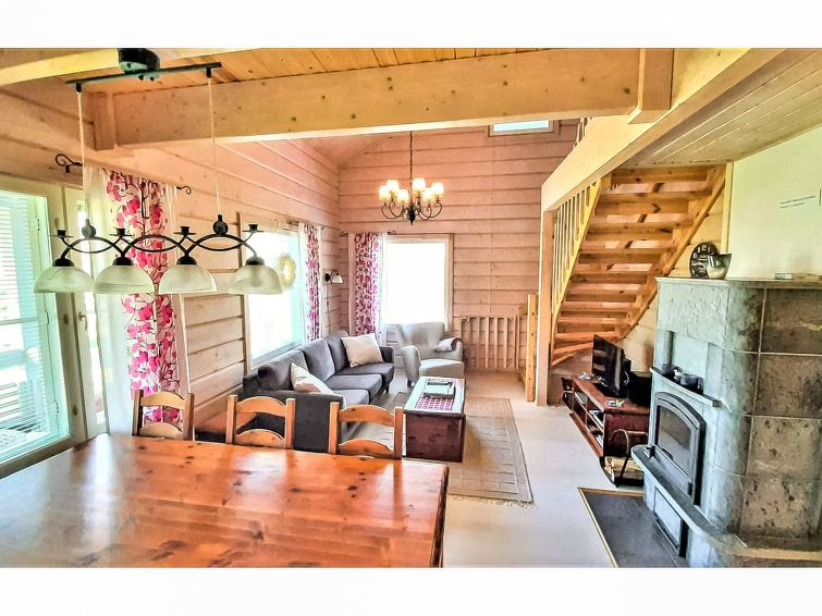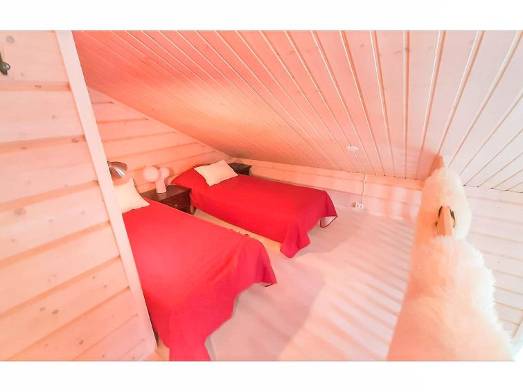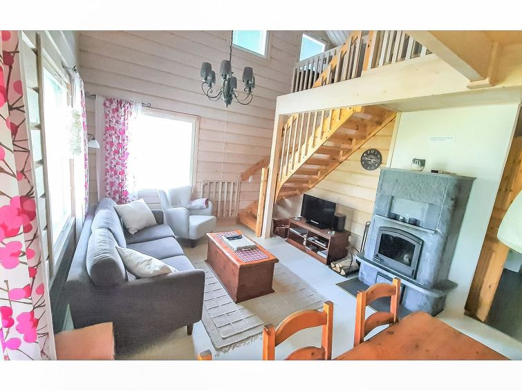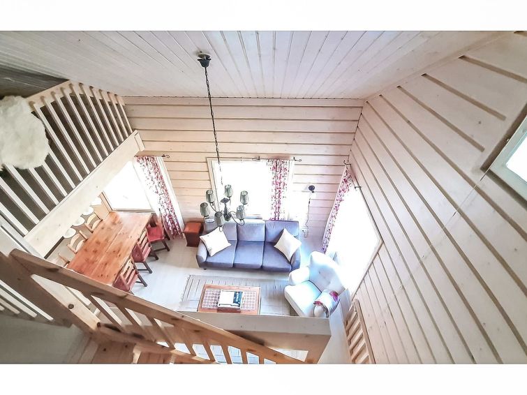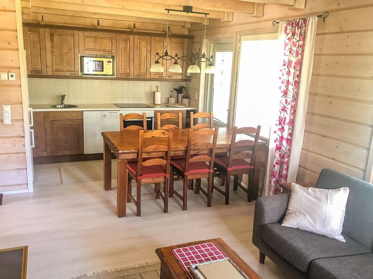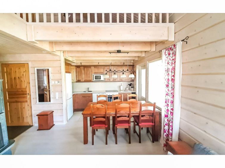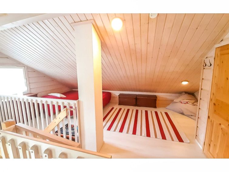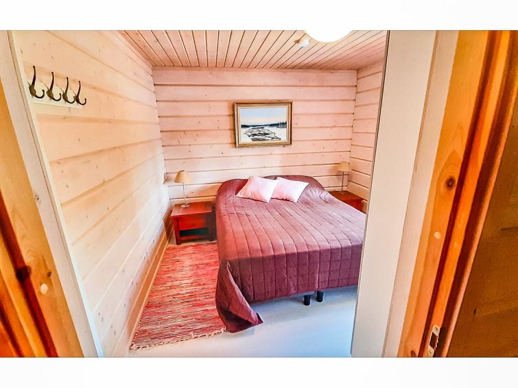 40 km north of Kolari, lake Ylläsjärvi 3,5 km, ski resort 2,5 km, swimming beach 5 km. Log duplex apartment, built 2009. Livingroom/kitchen, one bedroom with double bed, loft 16 m² with four separate beds, electric sauna and washing room, two separate toilets (one dowstairs, one on the loft). Good quality duplex apartment located in the Ylläsjärvi village new cottage area near the Maisematie scenic road. The apartment is located in a quiet area. Floor area 70 m² of which 16 m² on the loft. Location ideal for winter sports. Prices include final cleaning, bed linen are available for rent.