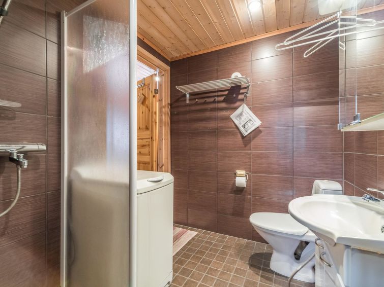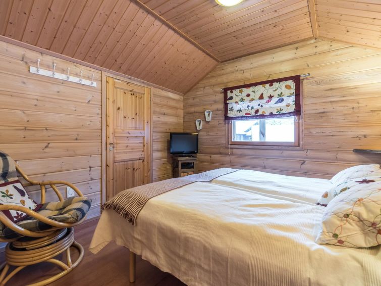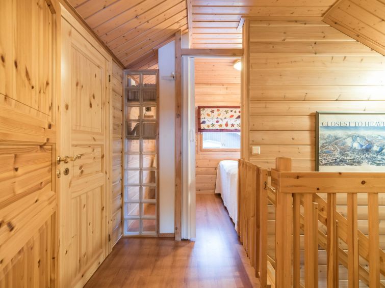 A two-storey log duplex apartment located 165 km north of Rovaniemi, in Ylläsjärvi village. Built 2004. Combined living room kitchen sofa bed, 3 x bedrooms 2 beds, electric sauna, washing room, ski waxing room, terrace, storage room, toilet. Final cleaning is included in the price. Bed linen are available for rent. Pets are allowed. Extra charge for pets.