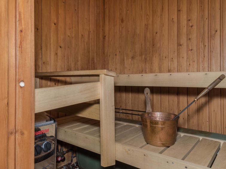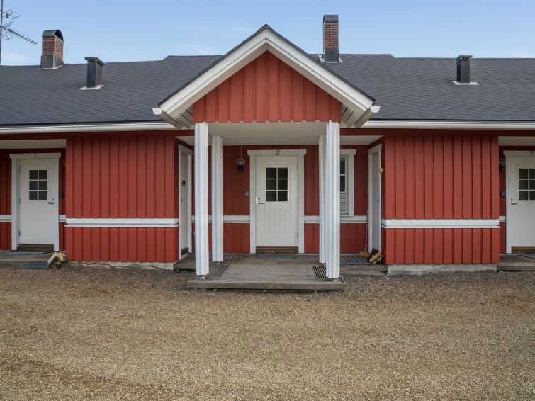 40 km north of Kolari, lake Äkäslompolo 200 m, swimming beach 1 km. Wooden row-house apartment, built 1987. Livingroom/kitchen, one bedroom with a bunk bed (bottom portion is extendable), loft (20 m2) with 2 separate beds and an extendable bunk. Electric sauna, washing room/toilet. Basic wooden row-house apartment located in the Äkäslompolo village Helukka-Ristimella area (address: Suorannantie). Location near the skiing tracks, Hotel Ylläshumina across the road. In addition: CD-player. No pets allowed. Prices include final cleaning, bed linen available for rent.