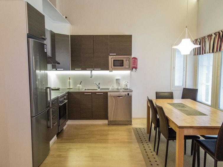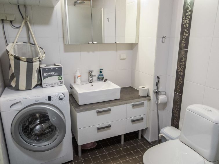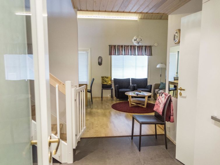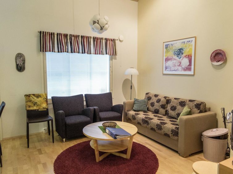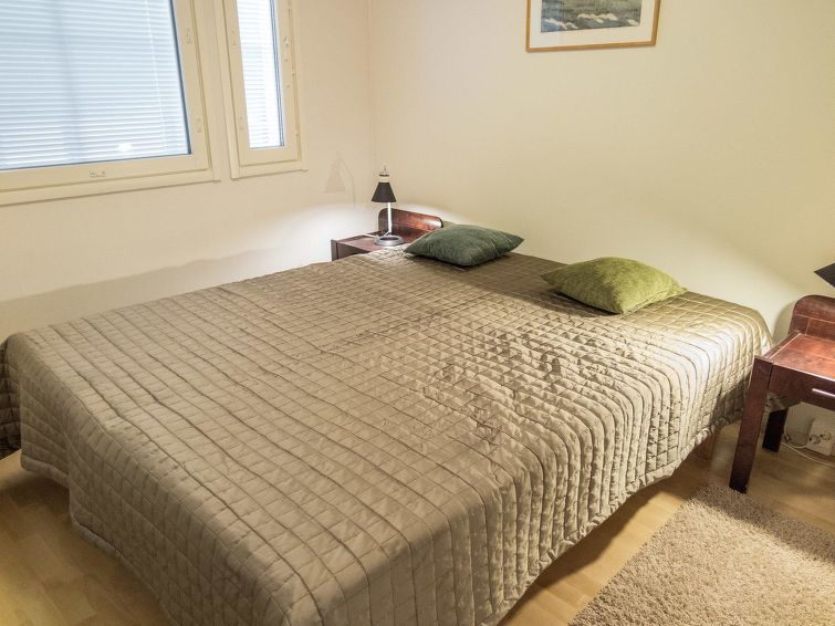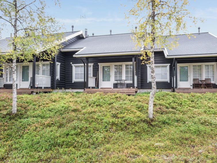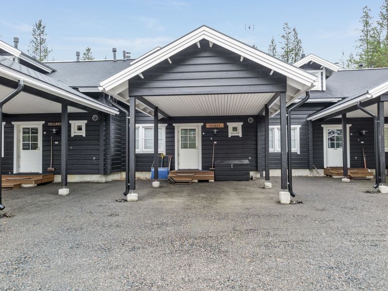 40 km to the northeast from Kolari, lake Ylläsjärvi approx. 2 km, swimming beach 3,5 km. Apartment in a row house, made from log, built in 2011. Apartment area 66 m², 13 m² in the loft. Living room/kitchen, 1 bedroom with two single beds, sauna (electrically heated), washroom/WC. 4 single beds and WC/shower in the loft. Cozy apartment in the row house. Four apartments in total in the same house. The apartment is located in Ylläsjärvi village, in Palovaara Ylinen area. The apartment is located in a calm holiday cabin area close to the illuminated ski trail. Ski maintenance room for shared use with other residents. Pets are not allowed in this apartment.