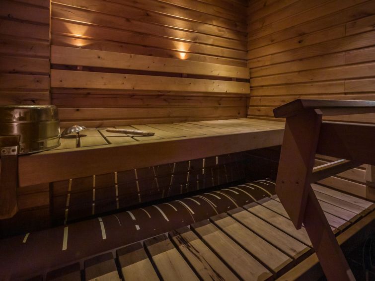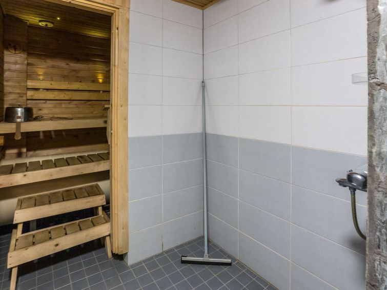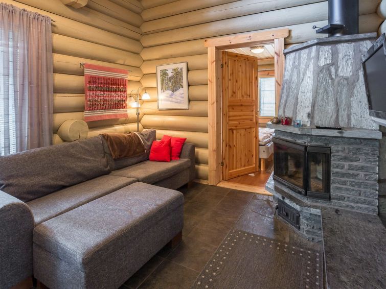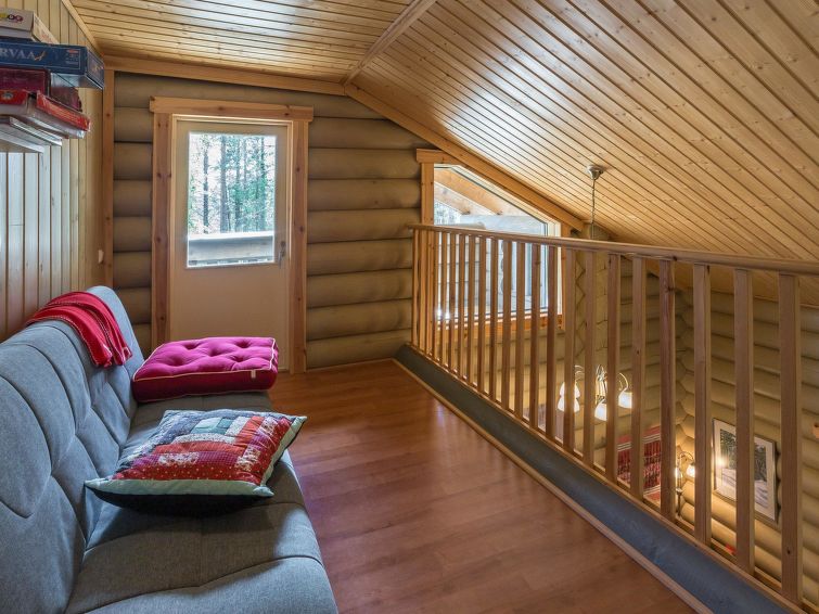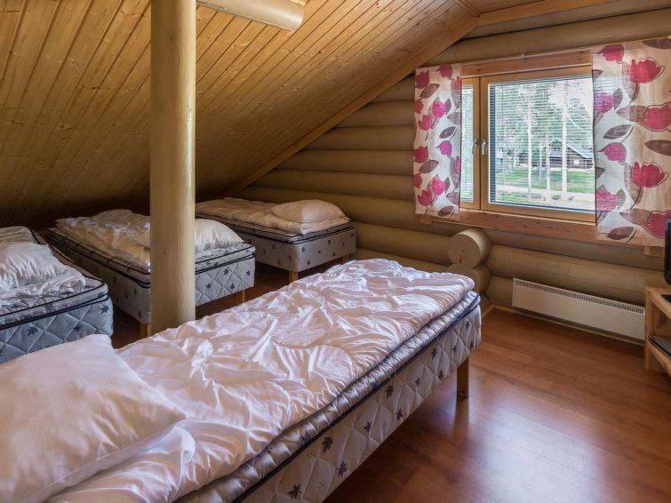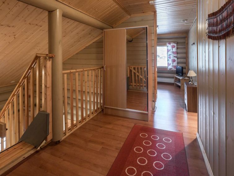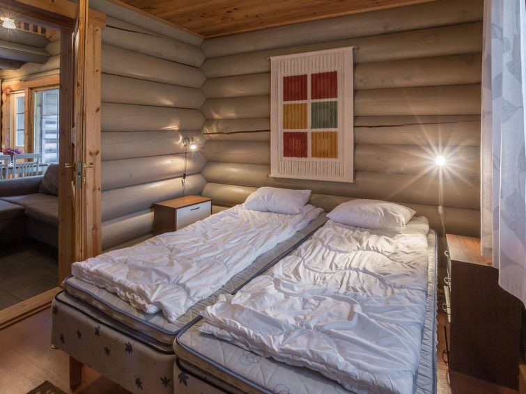 40 km north-east of Kolari, lake Ylläsjärvi 3 km, swimming beach 4,5 km. Log duplex apartment. Area 100 m² of which 30 m² on the loft. Livingroom/kitchen, two bedrooms each with two separate beds, loft with a large alcove with four beds, lobby TV for DVDs. Electric sauna, shower, separate toilet. Two porch, Wifi.