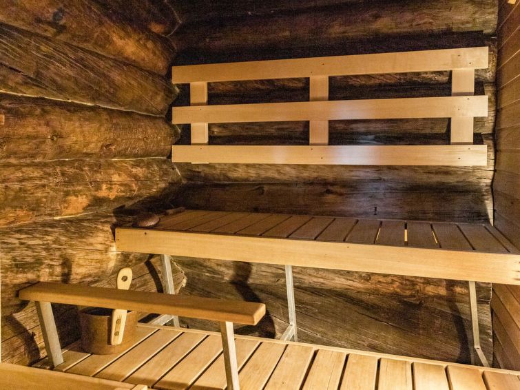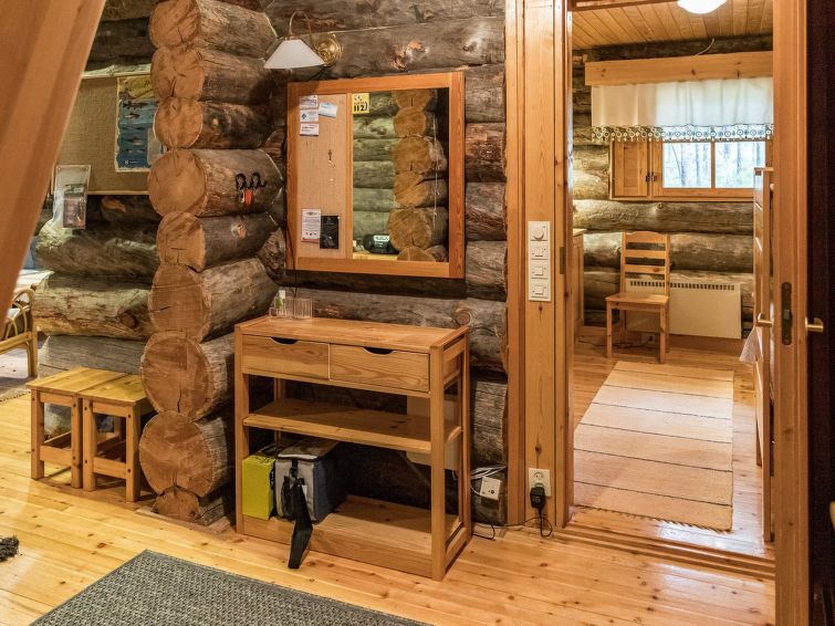 38 km north of Kolari, river Äkäsjoki 300m, lake Äkäslompolo 2 km, swimming beach 4 km. Log cottage, built 1988. Combined livingroom/kitchen, bedroom: 2 bunk beds, loft: 2 beds, electric sauna, shower, separate toilet. Ski waxing stand in the storage. Internet. Kolari railway station 35 km, Kittilä airport 55 km. Idyllic log cottage located in the Äkäslompolo village Kuertunturi area (address: Kievarintie). Location is a peaceful cottage area. In addition: room for drying clothes in the sauna, iron and ironing board, CD-player. No pets allowed. Prices include final cleaning. Bed linen available for rent.