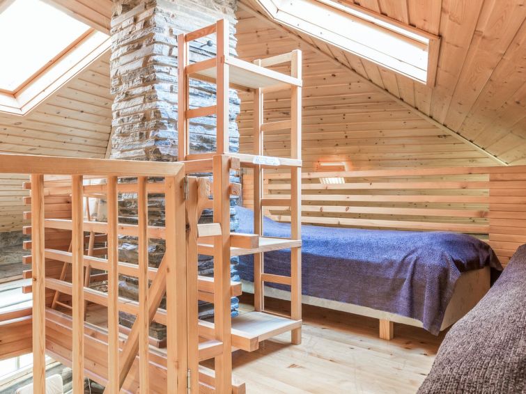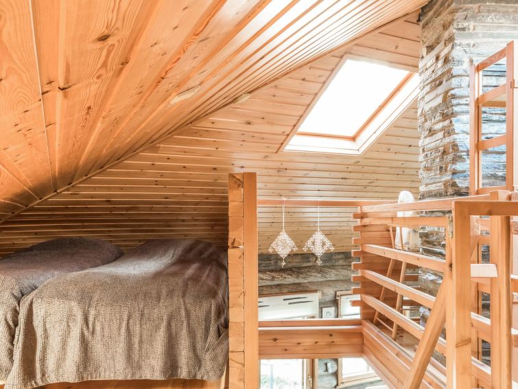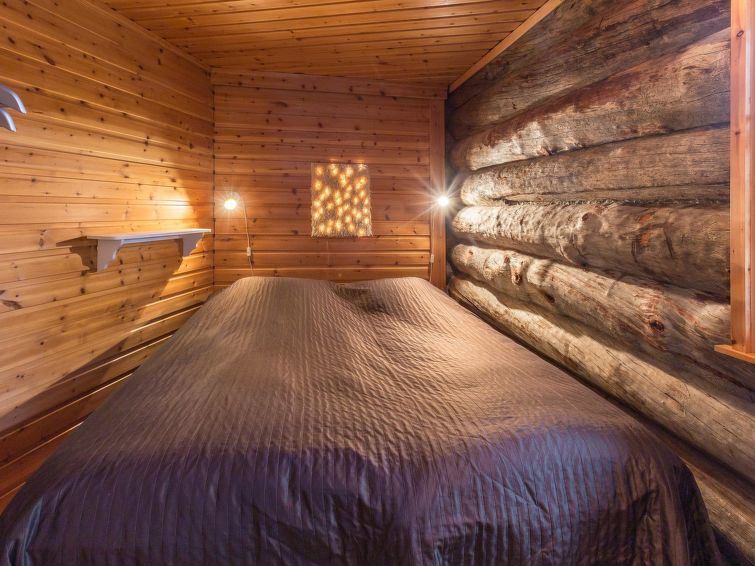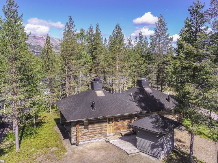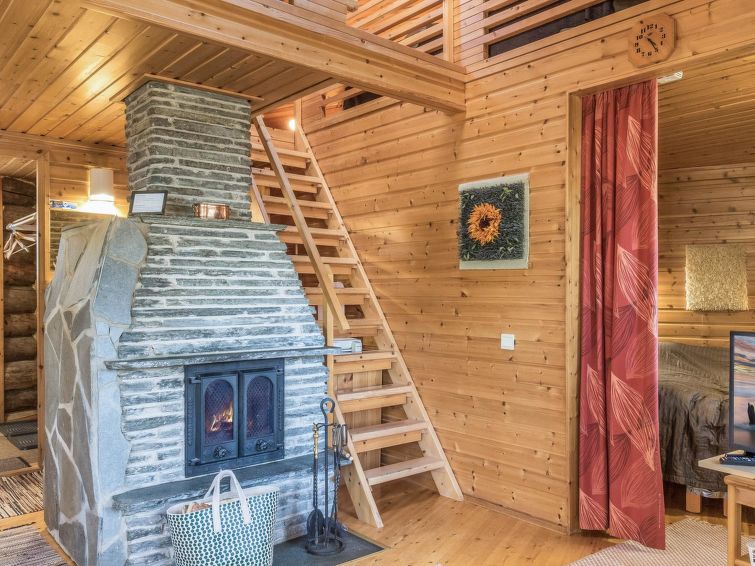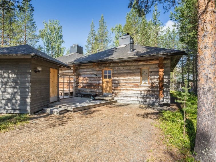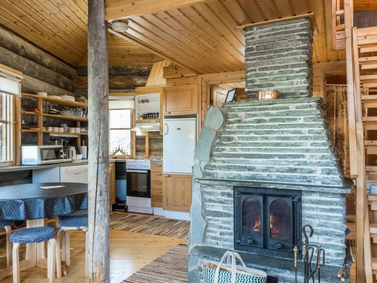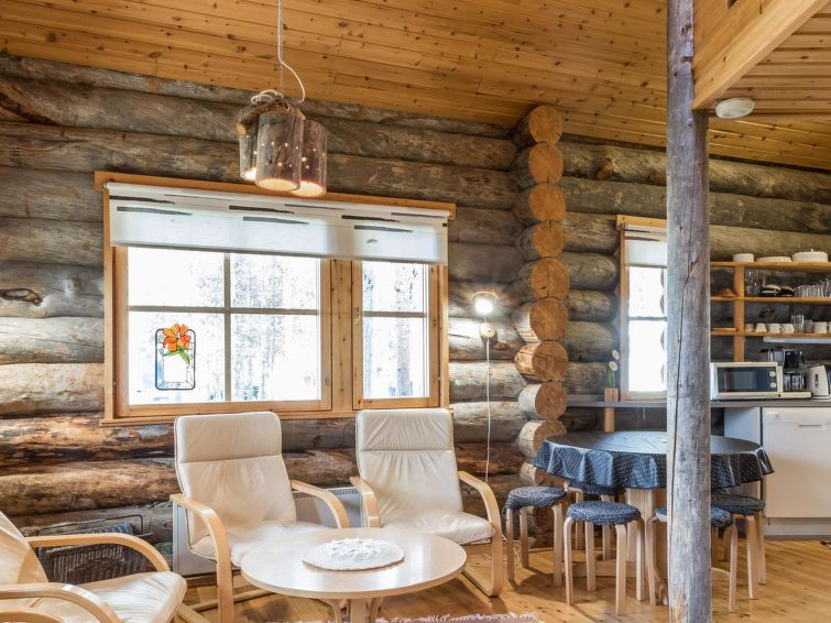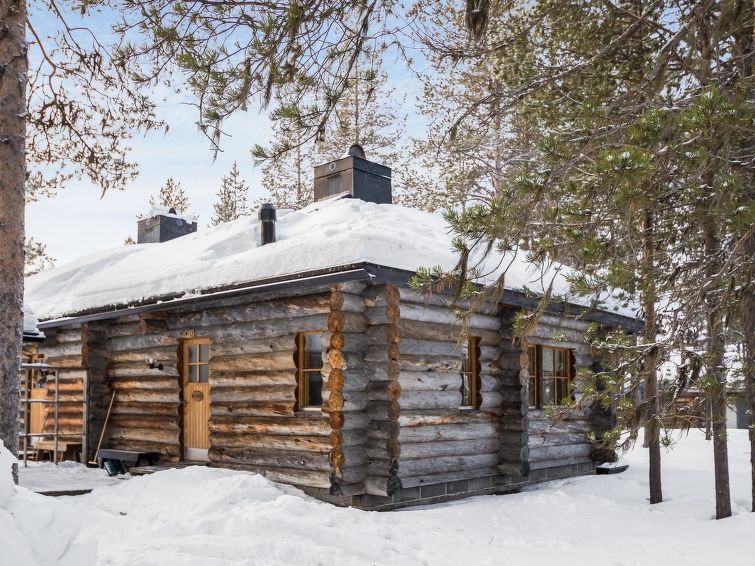 A log duplex apartment located 165 km north of Rovaniemi, in Ylinen Palovaara Ylläsjärvi. Built 1989. Combined living room kitchen, alcove 2 beds (curtain at the doorway), loft (floor area 25 m², sloping ceilings) 4 beds, electric sauna, washing room, storeroom, toilet. Barbecue hut in shared use. Final cleaning and firewoods for fireplace are included in the price. Pets are not allowed. Nearest skiing track (about 200 m) is illuminated.