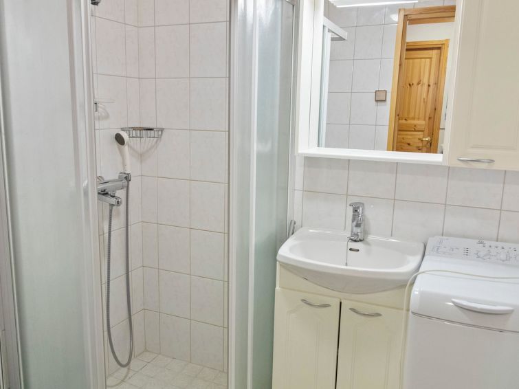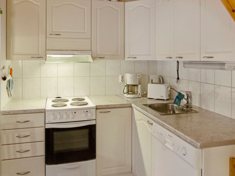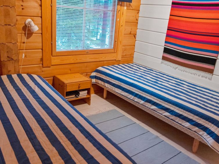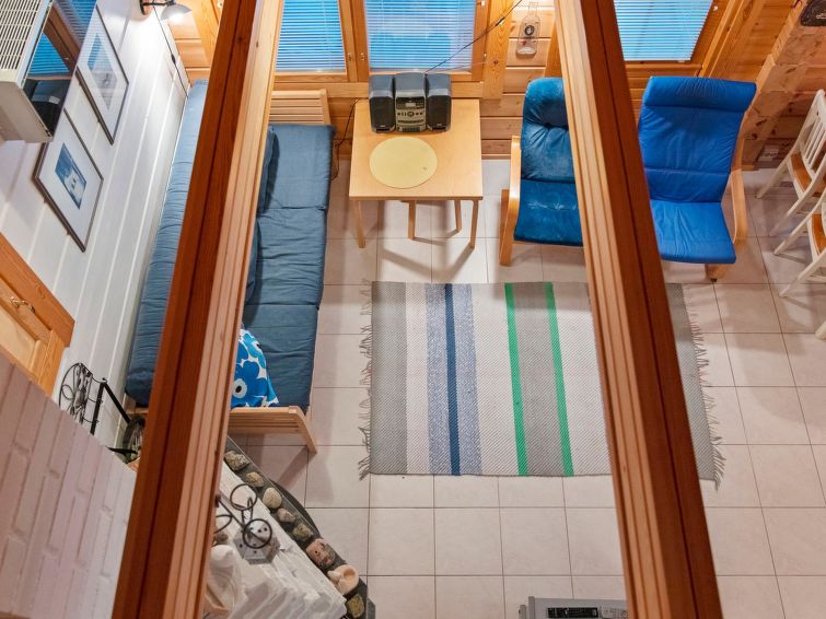 40 km north of Kolari, lake Äkäslompolo 1 km, swimming beach 1,5 km. Log duplex apartment, built 2005. Livingroom/kitchen with bed sofa, one bedroom downstairs with two separate beds, loft (17 m2) with two separate beds, electric sauna, shower/toilet. Veranda. Homely, log duplex apartment located in the Äkäslompolo village Röhkömukka area. Location near the services of Äkäslompolo center, ideal for car vacation. No pets allowed. Bed linen are available for rent.