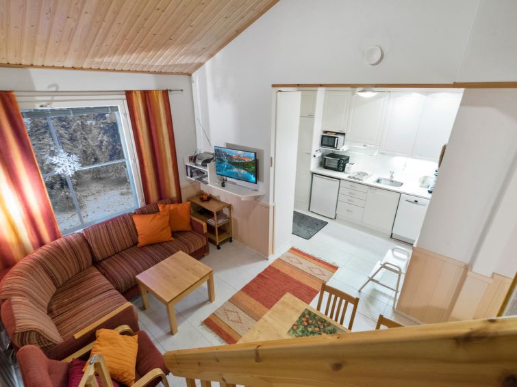 40 km north of Kolari, Lake Äkäslompolojärvi 1 km, swimming shore 1.5 km. An apartment in an apartment hotel, build 2006, area 44 m² of which 11 m² on the loft. Livingroom/kitchenette, alcove with 2 separate beds, loft (11 m²) 1 bedroom with 2 separate beds, sauna (electrically heated), washroom/wc. In downstairs of Yllästar 2 is laundrette and ski careroom. NOTICE! cooking plates and small oven. Apartment hotels YlläStar I and II are located in a central area in Ylläs on the Niestatie Road with a distance to Äkäshotel only 600 meters. You do not need Your own car when staying in Yllästar apartments. Services are all in walking distance from the apartments and You can use ski-bus when going to the slopes. Ski-tracks goes nearby. Apartment can be rented also for 6 persons if at least 2 of them are children (convertible sofa in the living room). Final cleaning is included in the prices. Bed linen will be always added to bookings.