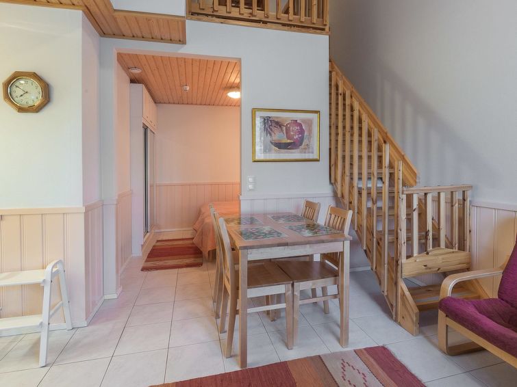 40 km north of Kolari, Lake Äkäslompolojärvi 1 km, swimming shore 1.5 km. An apartment in an apartment hotel, build 2006, area 44 m² of which 11 m² on the loft. Livingroom/kitchenette, alcove with 2 separate beds, loft (11 m²) 1 bedroom with 2 separate beds, sauna (electrically heated), washroom/wc. In downstairs of Yllästar 2 is laundrette and ski careroom. NOTICE! cooking plates and small oven. Apartment hotels YlläStar I and II are located in a central area in Ylläs on the Niestatie Road with a distance to Äkäshotel only 600 meters. You do not need Your own car when staying in Yllästar apartments. Services are all in walking distance from the apartments and You can use ski-bus when going to the slopes. Ski-tracks goes nearby. Apartment can be rented also for 6 persons, if at least 2 of them are children (convertible sofa in the living room). Final cleaning is included in the prices. Bed linen will be always added to bookings.