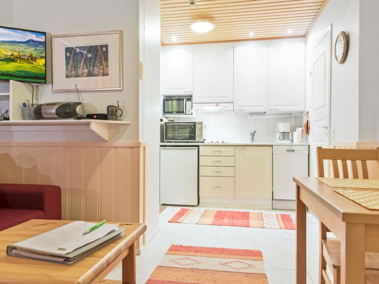 40 km north of Kolari, Lake Äkäslompolojärvi 1 km, swimming shore 1.5 km. An apartment in apartment hotel, build in 2006, area 44 m² of which 11 m² on the loft. Livingroom/kitchenette, alcove with 2 separate beds, loft 1 bedroom with 2 separate beds, sauna (electrically heated), washroom/wc. In downstairs of Yllästar 2 is laundrette and ski careroom. NOTICE! cooking plates + small oven on the table. Apartment hotels YlläStar I and II are located in a central area in Ylläs on the Niestatie Road with a distance to Äkäshotel only 600 meters. You do not need Your own car when staying in Yllästar apartments. Services are all in walking distance from the apartments and You can use ski-bus when going to the slopes. Ski-tracks goes nearby. Final cleaning is included in the prices. Bed linen will be always added to bookings.