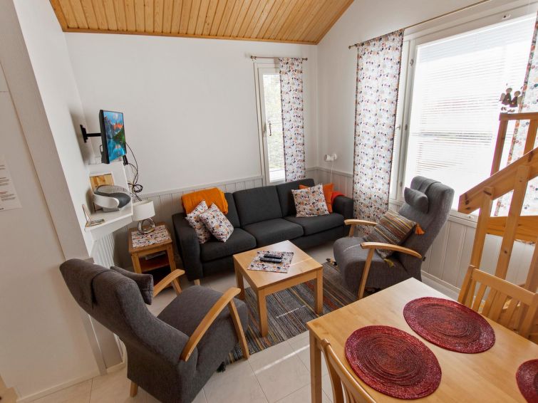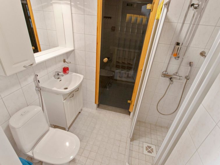 40 km north of Kolari, Lake Äkäslompolojärvi 1 km, swimming shore 1.5 km. An apartment in an apartment hotel, build in 2006. Area 44 m² of which 11 m² on the loft. Livingroom/kitchenette, 1 bedroom with 2 separate beds, loft 1 bedroom with 2 separate beds, sauna (electrically heated), washroom/wc. In downstairs of Yllästar 2 is laundrette and ski careroom. NOTICE! cooking plates (no oven). In this apartment Wi-Fi. Apartment hotels YlläStar I and II are located in a central area in Ylläs on the Niestatie Road with a distance to Äkäshotel only 600 meters. You do not need Your own car when staying in Yllästar apartments. Services are all in walking distance from the apartments and You can use ski-bus when going to the slopes. Ski-tracks goes nearby. Final cleaning is included in the prices. Bed linen will be always added to bookings.