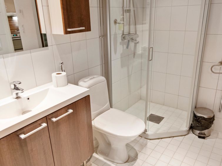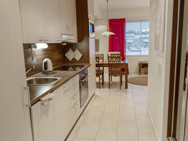 40km north of Kolari, lake Äkäslompolo 1km, beach 1,5km. Apartment in apartment hotel for 2 people built in 2010. Kitchen-living room, alcove with two separate beds, sauna (electric heated), bathroom/wc. Yllästar 3 apartments have a shared laundry room and ski tuning room. Apartment in an apartment hotel finished in Dec 2010 in the Röhkömukka area in Äkäslompolo village (Niestatie). Apartment is located right next to services in Äkäslompolo, location is easy to reach without a car. No pets allowed in the apartment. Final cleaning is included in the price. Bed linen is always added to reservations(18.17 euros/person).