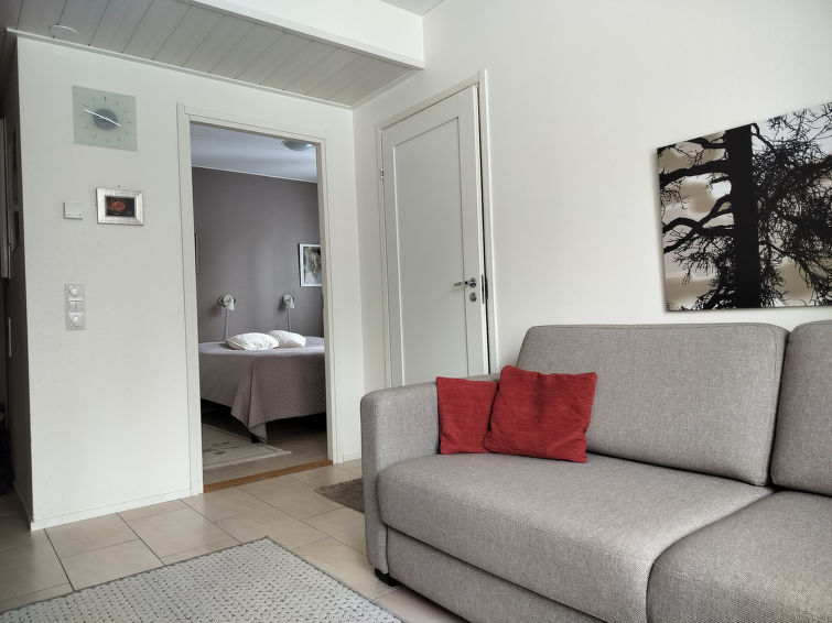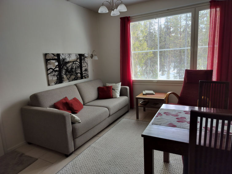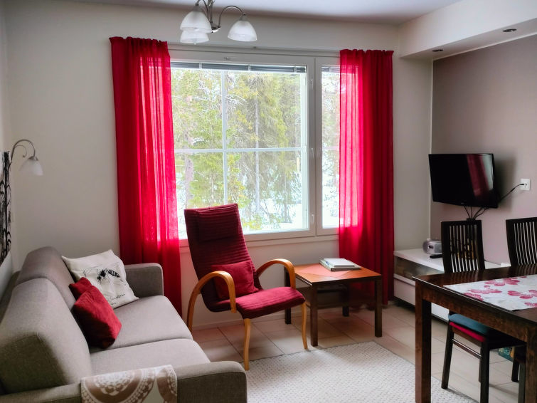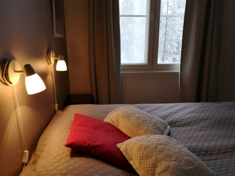 40 km North of Kolari, lake Äkäslompolo 1 km, swimming beach 1,5 km. First floor corner apartment in an apartment hotel, built 2010. Livingroom/kitchen , one bedroom with double bed and window. Electric sauna, shower/toilet both with window. All the windows with view to forest. Yllästar 3 has a common laundry room and ski maintenance room. Apartment in an apartment hotel located in the Äkäslompolo village Röhkömukka area (address: Niestatie). Apartment situated near the services of Äkäslompolo, easy place for carless. No pets allowed. Prices include final cleaning. Bed linen added to each reservation.