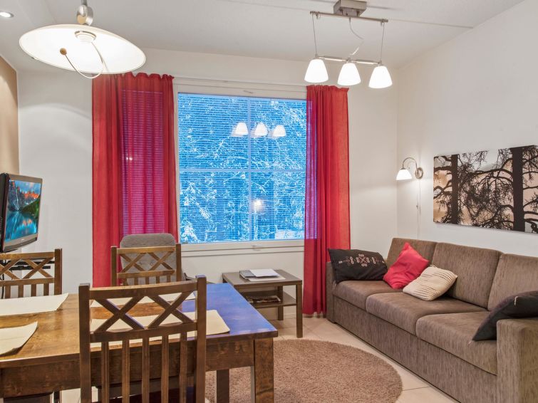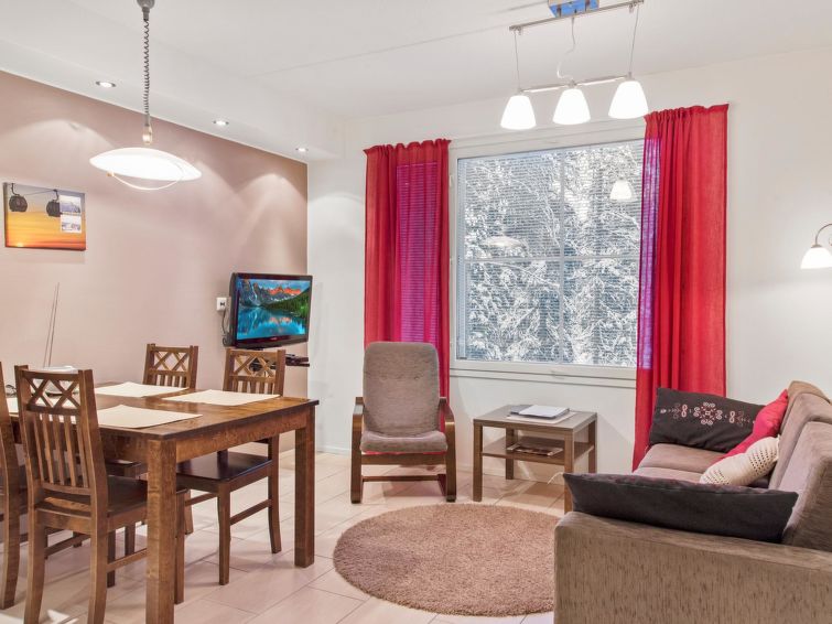 Apartment in an apartment hotel completed in October 2010 in Röhkömukka area in Äkäslompolo village (Niestatie). Apartment is located right next to services in Äkäslompolo, location is easy to reach without a car.