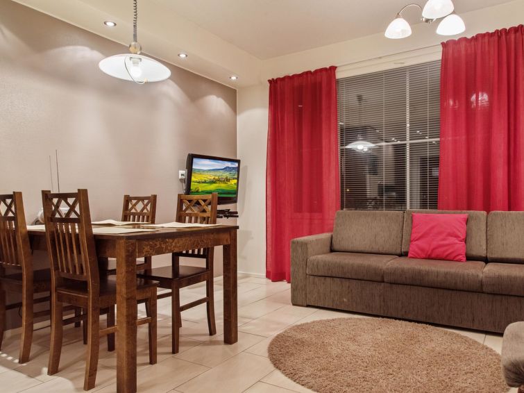 Photos give only an indication. Apartment in an apartment hotel (building finished in December 2010) located in the Äkäslompolo village Röhkömukka area (address: Niestatie). Apartment situated near the services of Äkäslompolo, easy place for carless. No pets allowed. Prices include final cleaning. Bed linen added to each reservation.