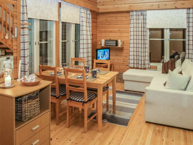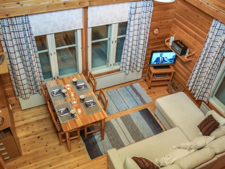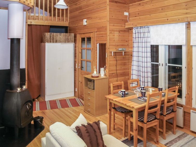 40 km north-east of Kolari. A log holiday apartment (4 apartment/house), 35m², build 1991, livingroom/kitchen bed , alcove with double bed (140 cm), loft with 3 mattresses (1 x 120 cm, 2 x 80 cm), Electric sauna, shower/toilet.