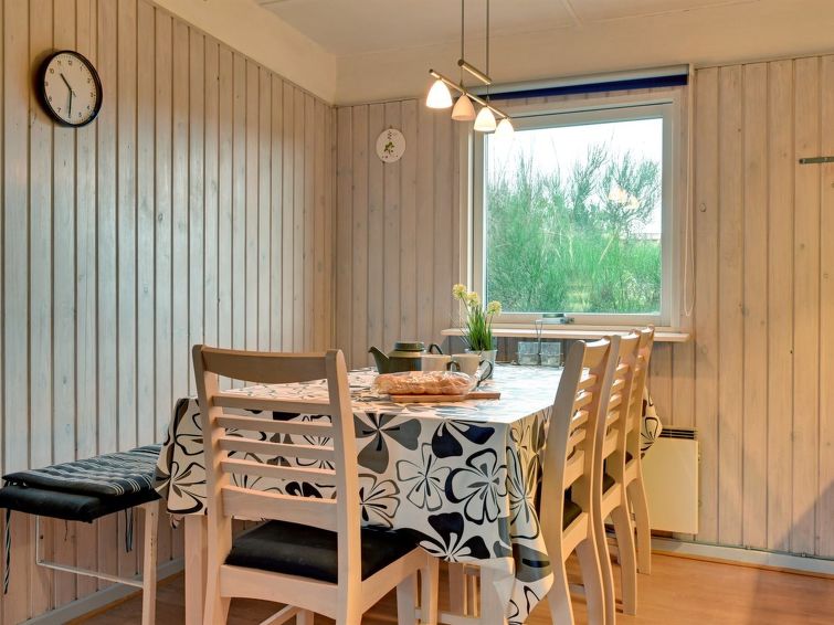 "Yorik" - 800m from the sea in Western Jutland", 3 rom hus 120 m2. Passer for 4 voksne + 3 barn. Stue med, TV, CD-spiller, stereoanlegg og DVD. 1 rom med, 1 dobbeltseng. 1 rom med, 2 x 2 køysenger. 1 rom med, 1 dobbeltseng. Kjøkken (stekeovn, oppvaskmaskin, 4 keramiske kokeplater, mikrobølgeovn, frys). Dusj/WC. Fasiliteter: høy barnestol barneseng (ekstra). Internett (trådløs LAN [WLAN]). Max kjæledyr / hund tillatt 1 kjæledyr / hund tillatt.