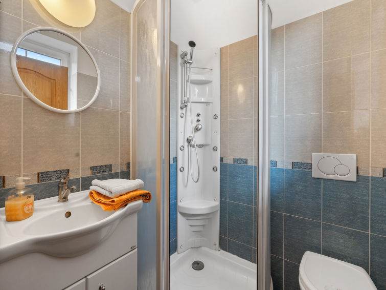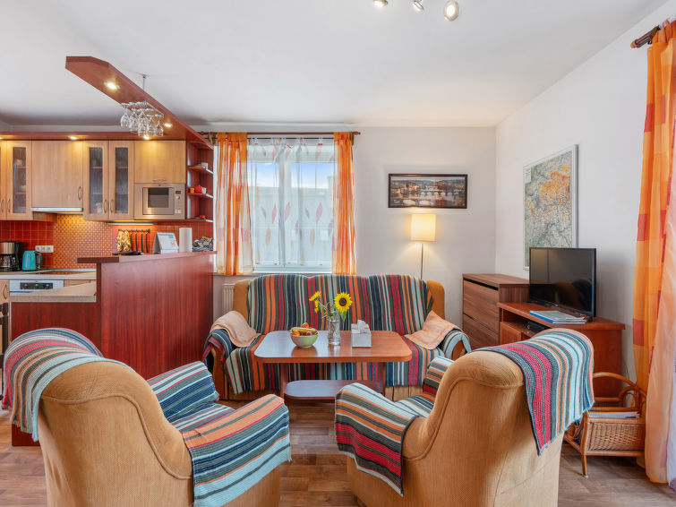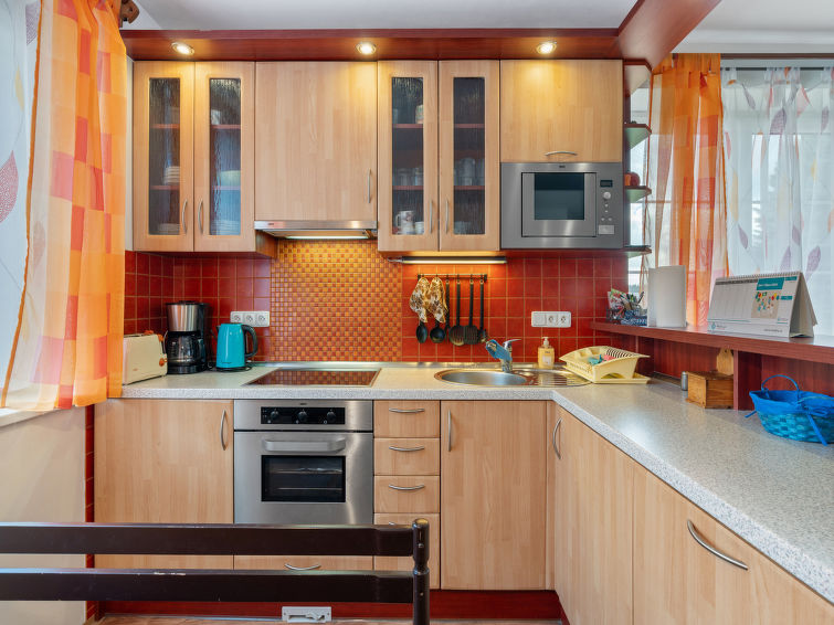 3 rom hus 65 m2 på 2 etasjer. Koseligt møbler: stue med, 1 sovesoffa, vedovn og satelit-TV. Åpent kjøkken (4 kokeplater, oppvaskmaskin, brødrister, vannkoker, mikrobølgeovn, frys, elektrisk kaffemaskin) med, spisebord. Dusj/WC. Gassoppvarming. øverste etasje: 1 rom med, 1 dobbeltseng. 1 rom med 3 senger. Bad/WC. Terrasse. Terrassemøbler. Fasiliteter: vaskemaskin. Internett (trådløs LAN [WLAN], gratis). Vennligst merk: velegnet for familier. Røykfritt hus.