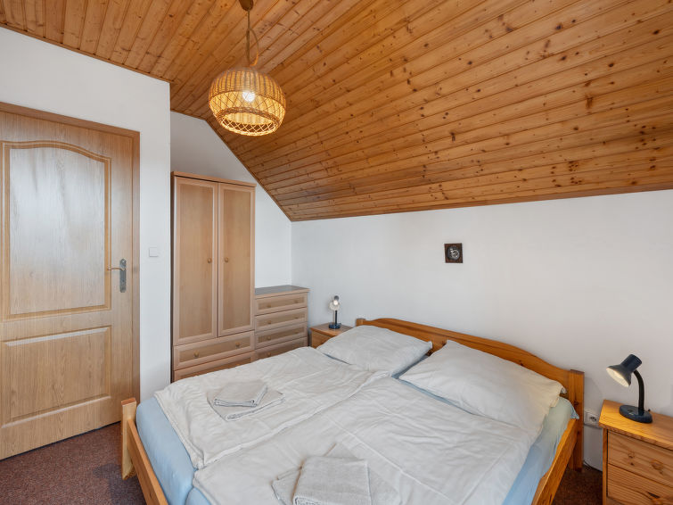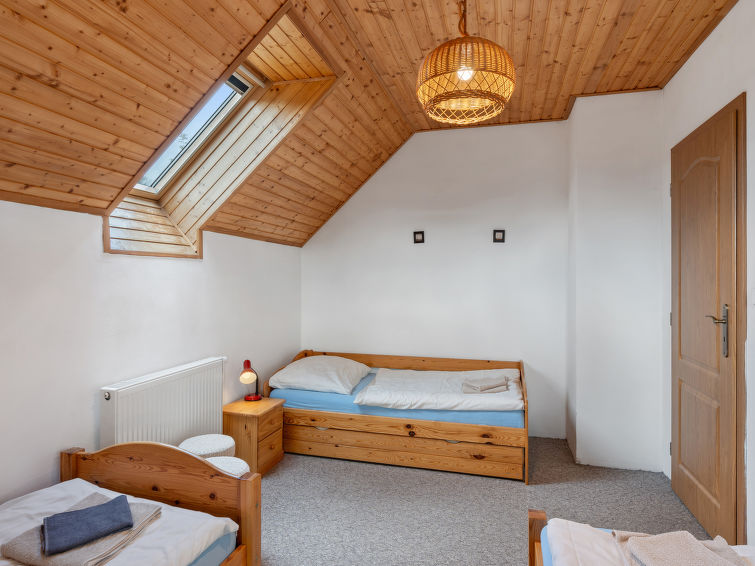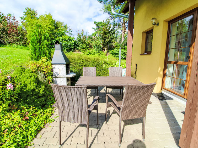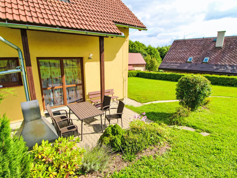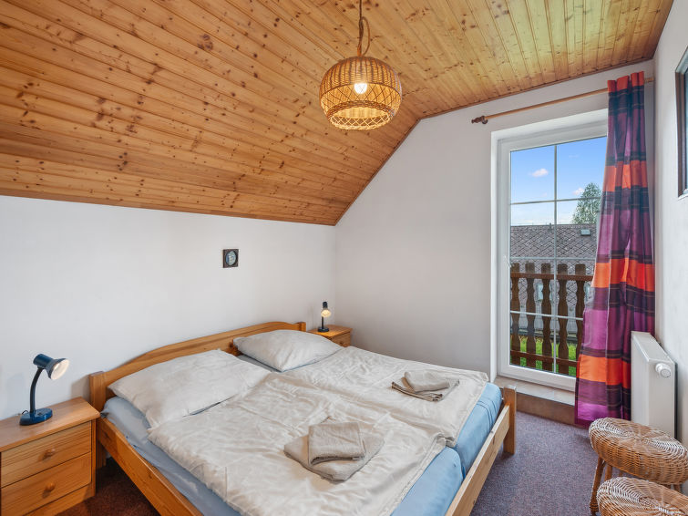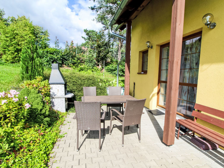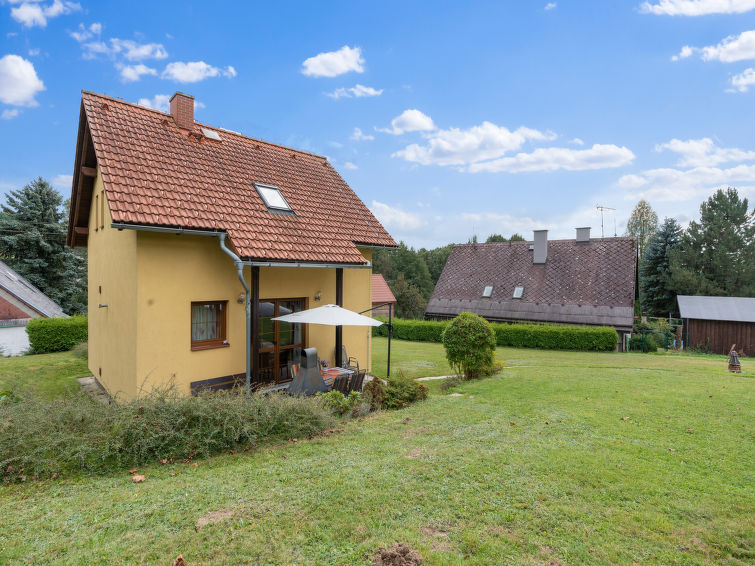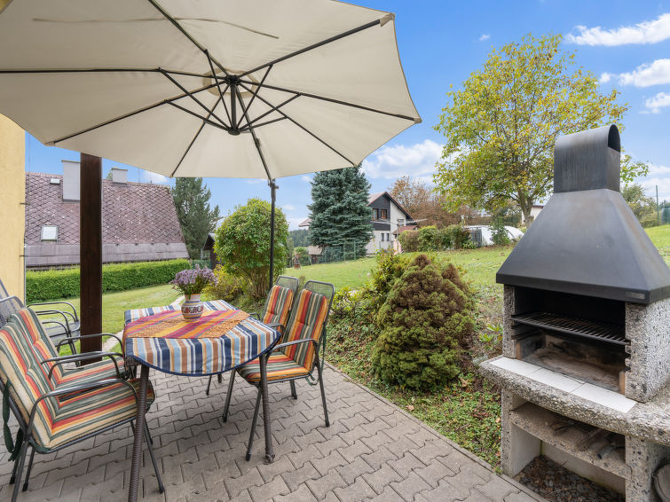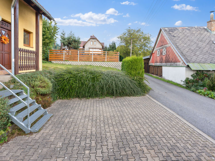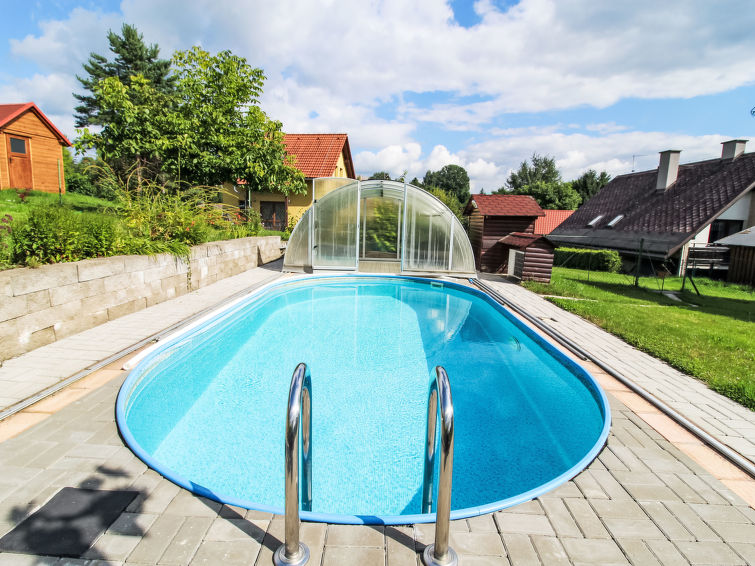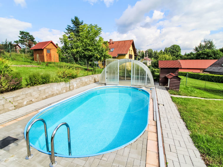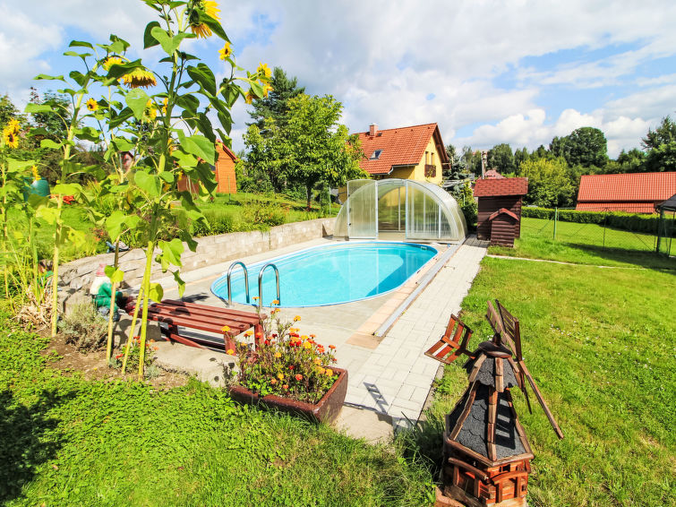 Hus "Zásada", med 2 etasjer, frittstående, bygget i 2008. I utkanten, i en roligt, solrikt posisjon, 500 m fra skiområdet. Fellesbruk: 1 badebasseng oppvarmt (6 x 3 m, dybde 140 cm dyp, Sesongåpent: 01.Mai. - 30.Sep.). Privat: tomt 900 m2, eng. Badminton, terrasse, hagemøbler, grill. I huset: trådløst LAN [WLAN], sykkelrom, skirom, vaskemaskin. Tilgang med bil hele veien til hbrukt. Parkering (for 2 biler) ved hbrukt. Daglivarehandel 200 m, restaurant 100 m, bussholdeplass 200 m. Skibakker, skiskole 500 m, langrensløype 10 m, lekeplass 300 m. Attraksjoner i nærheten: Cyklostezka Járy Cimrmana, pivovar 200 m, rozhledna Špičák 12 km, Jizerka 20 km, Aquapark Babylon Liberec 23 km, Ještěd 34 km. Velkjente skiområder: Tanvaldský Špičák 12 km, Harrachov 25 km, Rokytknice - Lysá Hora 25 km. Turstier Černá Studnice (869 m) 6 km, Český ráj - Hrubá Skála 25 km, hrad Valdštejn 27 km. Please note: the pool is located behind the fence on the owner´s property, who uses the pool minimally and only in the absence of guests.