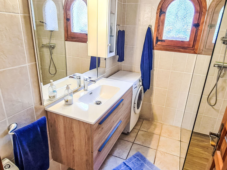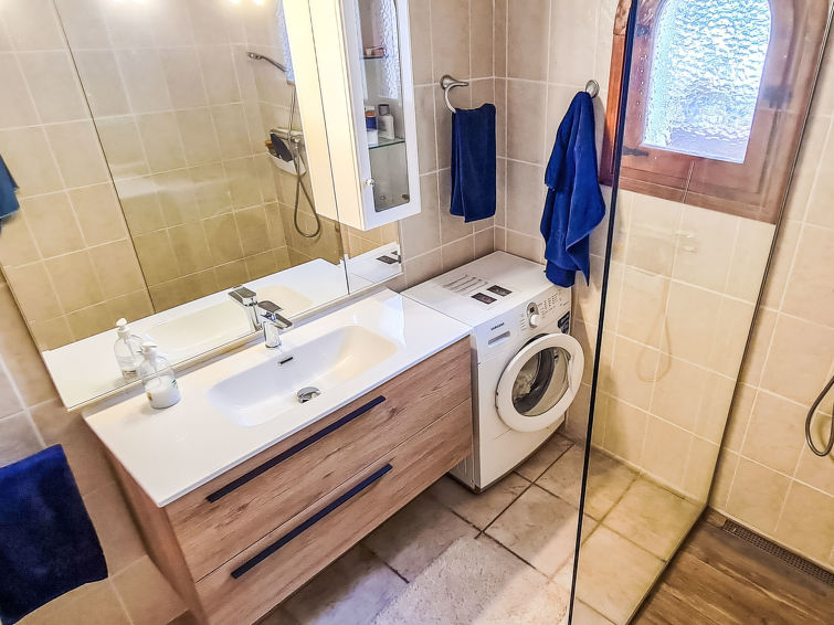 3 rom hus 80 m2. Praktiskt møbler: med, vedovn og satelit-TV. Utgang til terrassen. 1 rom med, 1 dobbeltseng og air-conditioning. 1 rom med 2 senger og air-conditioning. Kjøkken (stekeovn, brødrister, mikrobølgeovn, frys, elektrisk kaffemaskin). Bad/WC med hjørnebadekar. Terrasse dekt. Terrassemøbler, grill (flyttbar), liggestoler (4). Vakker panoramautsikt av havet. Fasiliteter: høy barnestol barneseng. Internett (trådløs LAN [WLAN], gratis). Parkeringsplass (inngjerdet) ved hbrukt. Vennligst merk: kjæledyr / hund tillatt 1 kjæledyr / hund tillatt. Bare TV DE. AT446957
