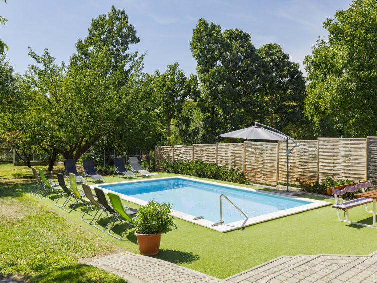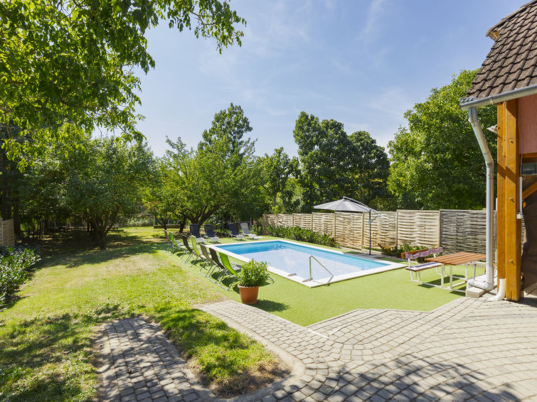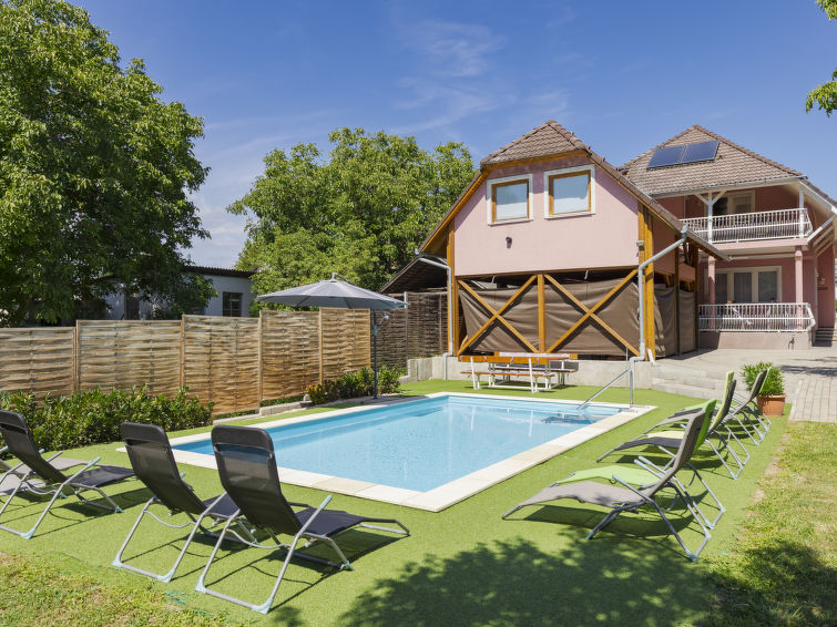 Balatonszemes: Koselig flermannsbolig "Zsuzsi", med 2 etasjer, renovert i 2011. I området, 1 km fra innsjø. Privat: hage m2 800 ha (inngjerdet), svømmebasseng (7 x 4 m, dybde 135 cm, Sesongåpent: 15.Mai. - 15.Sep.). I huset: trådløst LAN [WLAN], vaskemaskin. Daglivarehandel, restaurant 400 m, strand med gress 1 km. Rideskole 400 m.